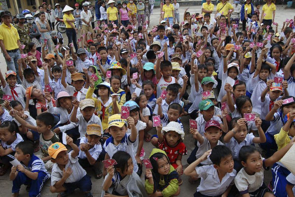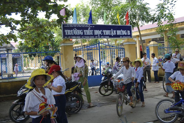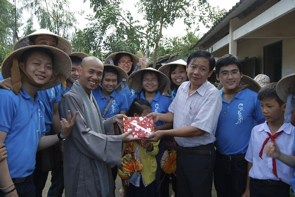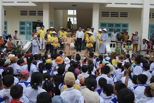 Sau đó ,Hội lại lên ghe đi dọc nhánh sông tiến tới trường tiểu học Thuận Hưng B ở gần đó. Tại đây, hội phát 250 phần quà, mặc dù dưới cái nắng nóng nhưng các em vẫn rất ngoan, trẻ em ở nơi đâu cũng vậy luôn háo hức được nhận quà, được chơi các trò chơi. Phát xong hai trường, đoàn về chùa Minh Tánh dùng cơm, cúng dường và chào tạm biệt các em cũng như quí Sư cô để tiếp tục lên đường về Cai Lậy, tỉnh Tiền Giang.