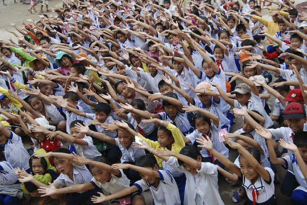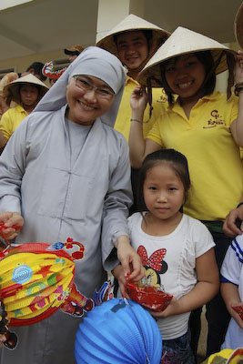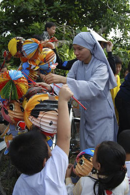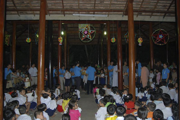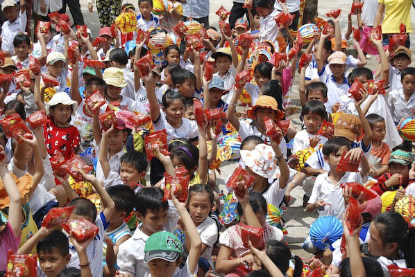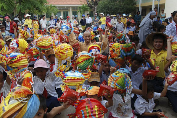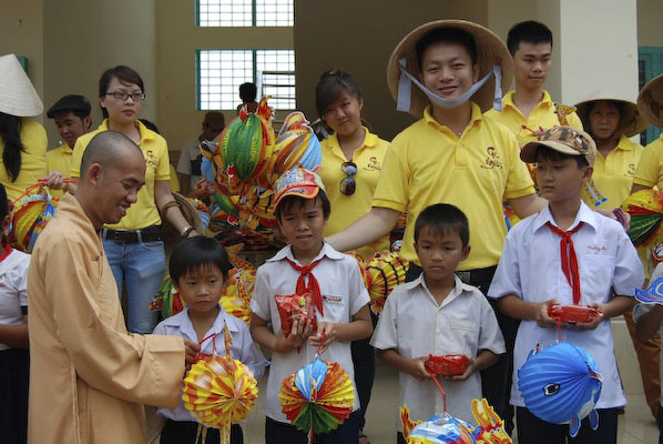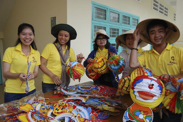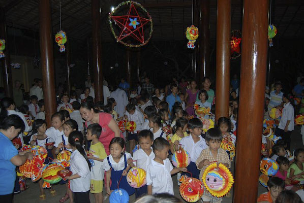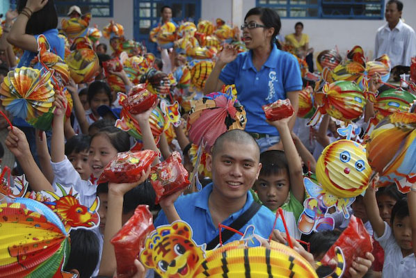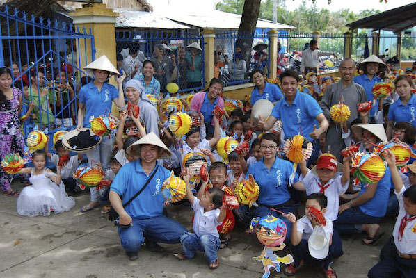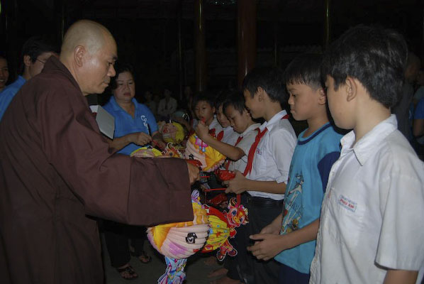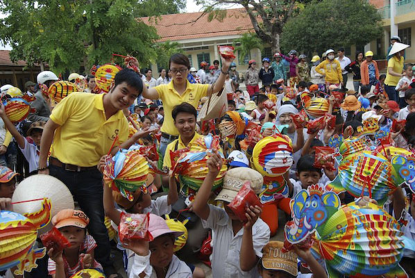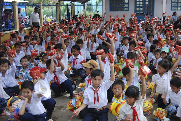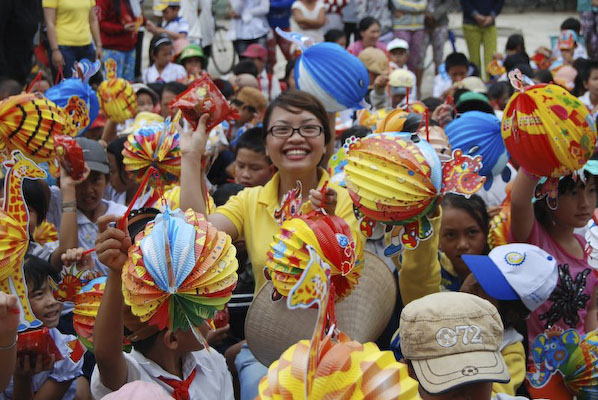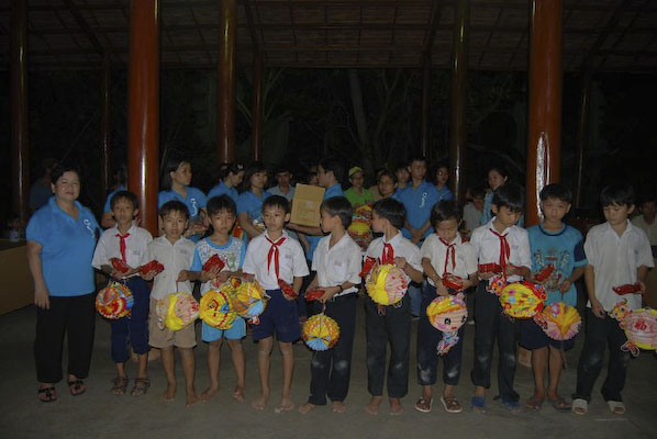 Khi thấy các anh chị áo xanh, các em tỏ ra thích thú và nô nức nhiệt tình chơi các trò chơi mà anh Hiếu hướng dẫn: nào là trò: đất ta… ta ngồi, trời ta… ta đứng, sen búp, sen nở…Hậu trường chuẩn bị nhanh chóng, 150 phần quà là lồng đèn và 150 chiếc bánh trung thu phát cho các em. Những chiếc lồng đèn được bung ra sẵn đủ các hình dạng nào là hình Nobita, chú heo, chim, ông mặt trời…cùng chiếc bánh trung thu màu đỏ khiến cả sân trường Thuận Hưng A rực rỡ màu sắc.