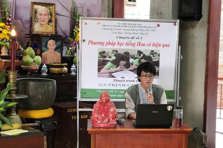 Buổi thuyết trình của Thầy Nhiên rất gần gũi, thầy vừa trao đổi kinh nghiệm học tâp, vừa tiếp sức cho các em thêm niềm đam mê về môn học tiếng Hoa. Qua đó, các em có thêm niềm tin trong khả năng giao tiếp của mình. Thầy Nhiên đã khai mở cho các em những kinh nghiệm, kỹ năng cần có để có thể nghe, nói, đọc, viết tiếng Hoa được một cách dễ dàng hơn.