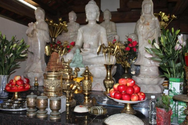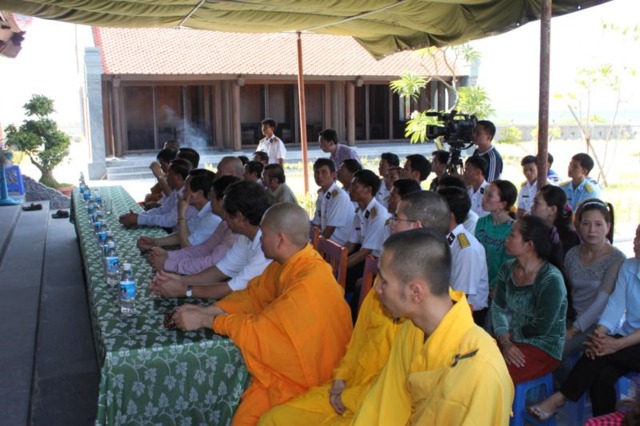 13h30 cùng ngày đoàn công tác tiến hành lễ an vị tượng Phật Thích Ca Mâu Ni tại chùa Trường Sa Lớn.