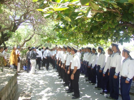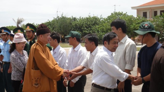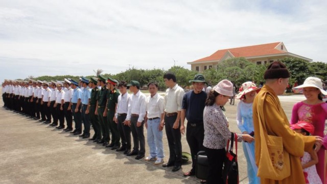Chuyến công tác đã thành công viên mãn. Quân dân huyện đảo Trường Sa khấn khởi vui mừng khi đón nhận hai pho tượng Phật Thủ tướng tặng.