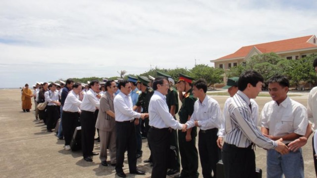 Đón đoàn công tác có Thượng Tá Nguyễn Hữu Lục – Đảo trưởng, Chủ tịch thị trấn Trường Sa cùng toàn thể quân dân trên đảo Trường Sa Lớn; Thượng tá Phạm Văn Hoà – Đảo Trưởng, Chủ tịch UBND xã Song Tử Tây và toàn thể quân dân trên đảo Song Tử Tây.