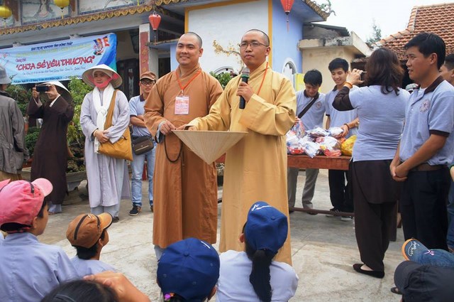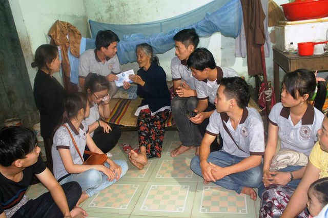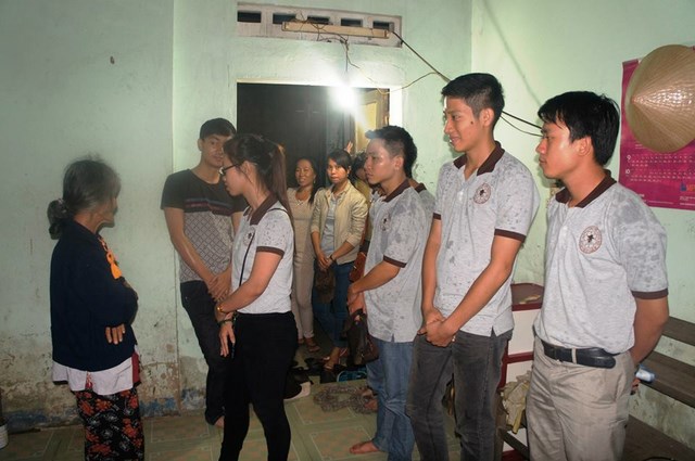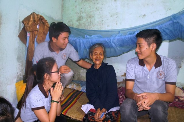 Buổi chiều cùng ngày, đại chúng trở về Đà Nẵng để thăm và tặng quà cho cụ bà Đoàn Thị Tỉnh – 74 tuổi đang bị mù mắt, sống trong hoàn cảnh neo đơn, không người thân chăm sóc.