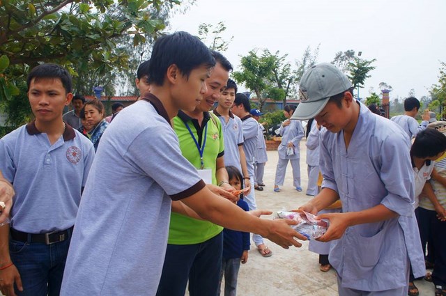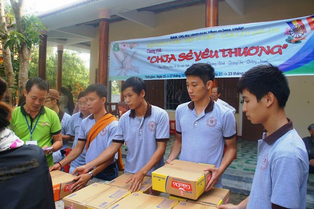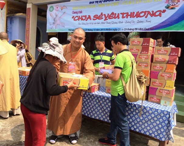 Bên cạnh đó, tập thể CLB phối nối kết cùng với Hội Khai Tâm, Hội 14 chữ TP.HCM trao tặng 300 phần quà cho đồng bào bị thiên tai và các em thanh thiếu niên Phật tử sinh hoạt tại Chùa.