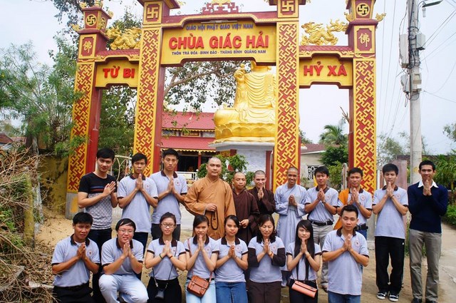 Đầu tiên, đại chúng đã tham lễ Tam Bảo, trì tụng kinh chú và cúng dường tịnh tài hỗ trợ cho Chùa Giác Hải – Huyện Thăng Bình còn gặp nhiều khó khăn. Cũng tại ngôi già lam này, đại chúng đã chúc mừng cho chú Ngô Kim Khánh – nguyên là Trưởng ban Nghi lễ CLB Đà Nẵng 14 Chữ, bây giờ đã xuất gia tu học vào dịp Rằm tháng 9 vừa qua.