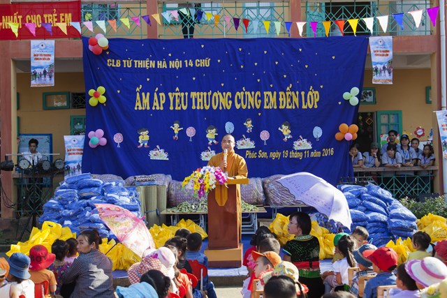 Sống trên thành phố, ta nào ngờ đến ở vùng xa xôi hẻo lánh vẫn còn những con đường đầy sỏi đá, gập ghềnh đến giật mình. Một cô giáo ở trường kể với chúng tôi: “Nắng cũng như mưa, hễ mất nước là các em phải xuống con suối cạnh trường để tắm. giờ tập trung các em ngồi đất ở sân trường, không phải là xi măng hay cát sỏi. Một phòng 18 người với 1 cái quạt.” Rơi nước mắt trước hoàn cảnh thiếu thốn của các em trên hành trình tìm chữ, chúng tôi, những Phật tử trên thành phố Hà Nội, Quảng Ninh và cả tại Biên Hòa, TP. Hồ Chí Minh… đã không quản khó nhọc để đến với đất Yên Bái khô cằn này.
