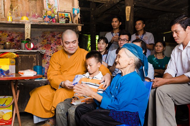 Đặc biệt hơn cả, Đại đức Thích Lệ Minh (Ủy viên Ban Hoằng Pháp Trung ương Giáo hội phật giáo Việt Nam, Chứng minh sư Gia đình Tâm linh 14 Chữ) cùng đại diện thành viên CLB Hà Nội 14 chữ đã trực tếp đến nhà học sinh Hoàng Doãn Tuyên – học sinh khuyết tật có hoàn cảnh khó khăn trường tiểu học Cốc Ri có lời thăm hỏi động viên và trao tặng tịnh tài tịn vật hỗ trợ phần nào cuộc sống cơ cực cho gia đình em.