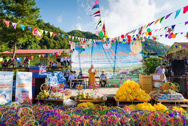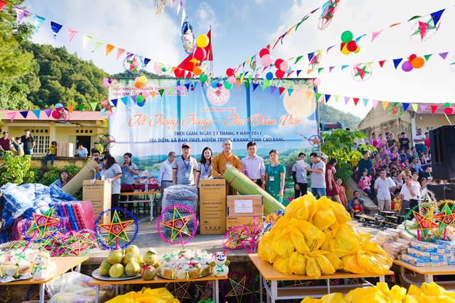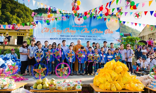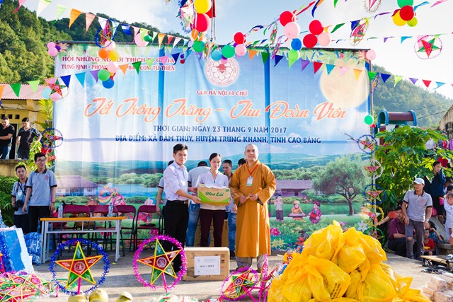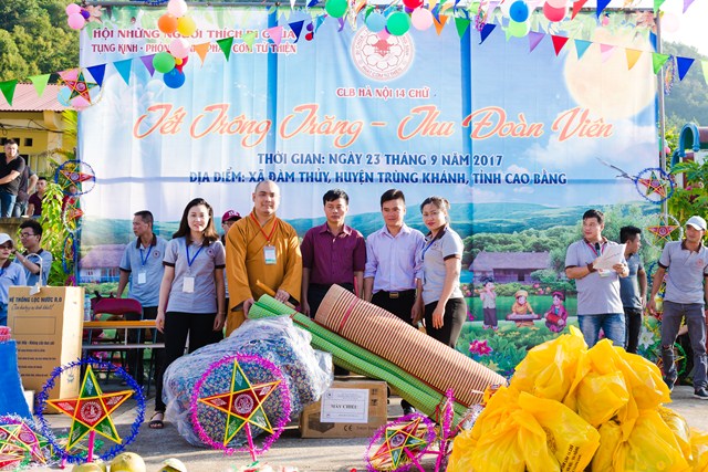 Một mùa trung thu ý nghĩa đã thực sự về với bản Nưa, xã Đàm Thuỷ (Trùng Khánh, Cao Bằng). Hàng nghìn phần quà tặng là những chiếc áo ấm vùng cao may mới, dép tổ ong, sách vở, bút, máy lọc nước, nồi cơm công nghiệp, bánh kẹo.. và những chiếc bánh trung thu đã được 112 thành viên CLB Hà Nội 14 Chữ mang lên và trao tặng dưới sự chứng minh và đồng hành của Đại Đức Thích Lệ Minh (UV Ban Hoằng Pháp Trung ương GHPG Việt Nam, Chứng minh sư Gia đình Tâm linh 14 Chữ) từ ngày 22 đến ngày 24 tháng 9 năm 2017 vừa qua trong chương trình Trung thu vùng cao “Tết trông trăng – Thu đoàn viên 2017”.