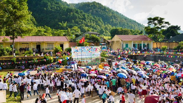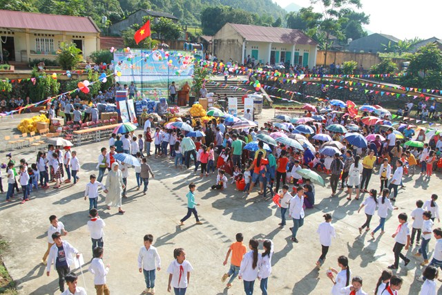 Có mặt ở điểm trường Cốc Ri từ rất sớm, rất đông các em học sinh từ mầm non cho đến các em trung học và rất đông phụ huynh dân tộc Tày đã có mặt tại nơi diễn ra chương trình từ rất sớm.