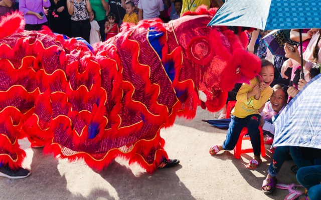 Những đứa trẻ lần đầu tiên được xem múa lân trong đời