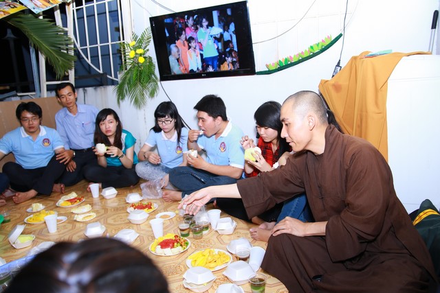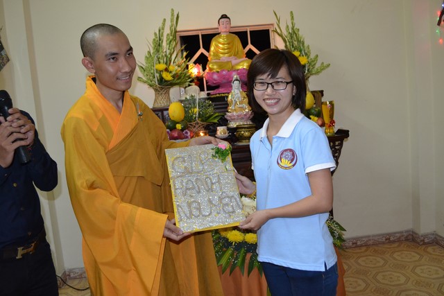 Cuối chương trình là phần giao lưu giữa Đại Đức cũng như các bạn tham gia trong buổi lễ, và phần nhận heo đất nhằm gây quỹ từ thiện phát quà cho học sinh nghèo vượt khó tại tỉnh Sóc Trăng 2014 – 2015.