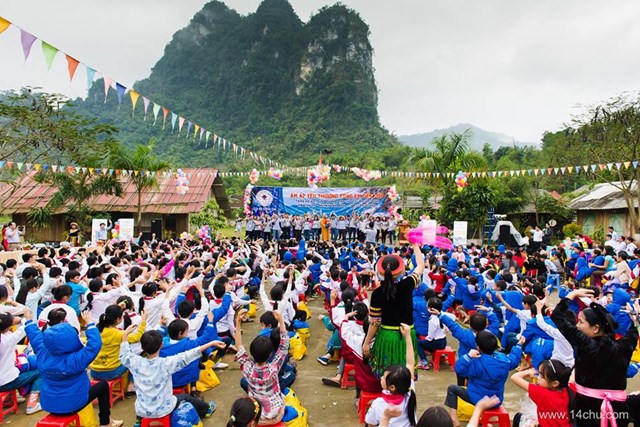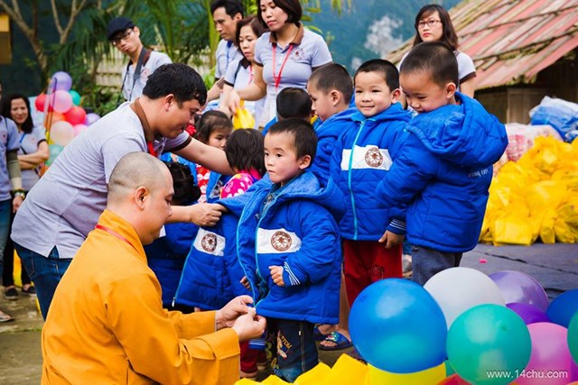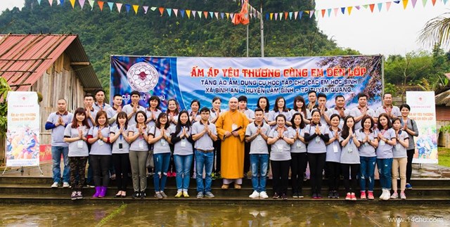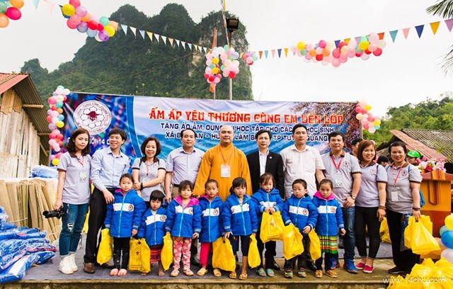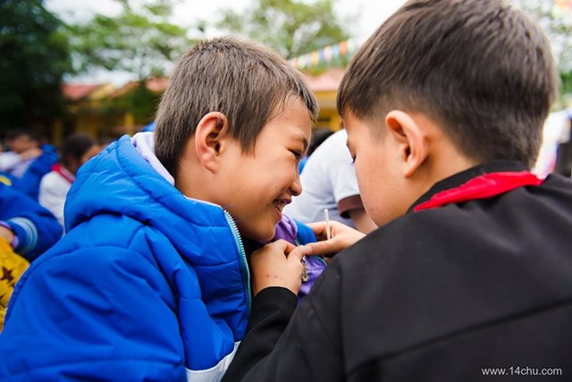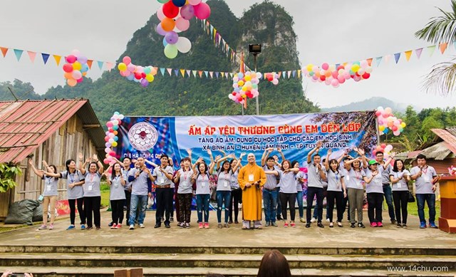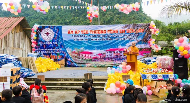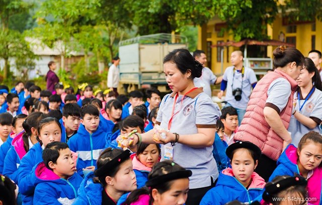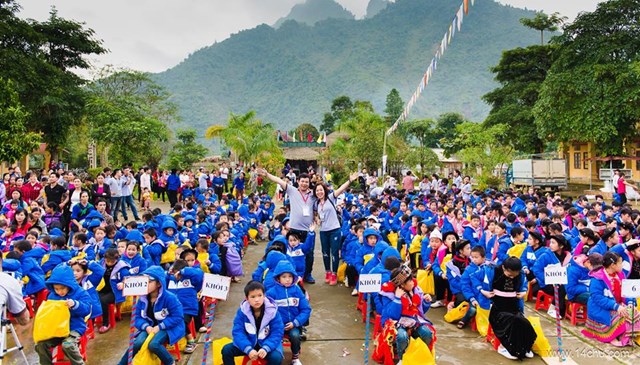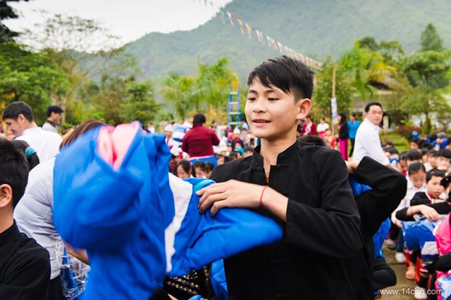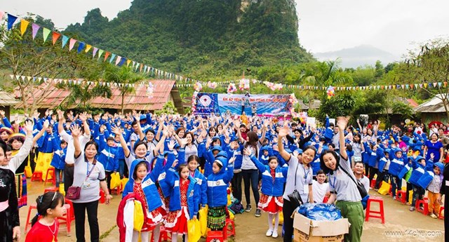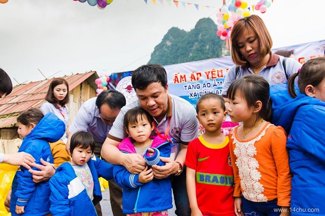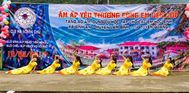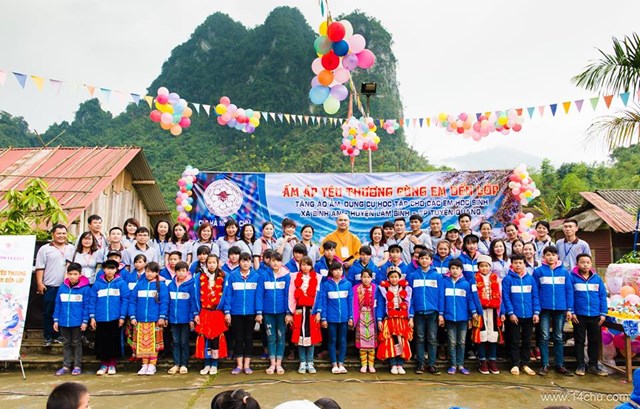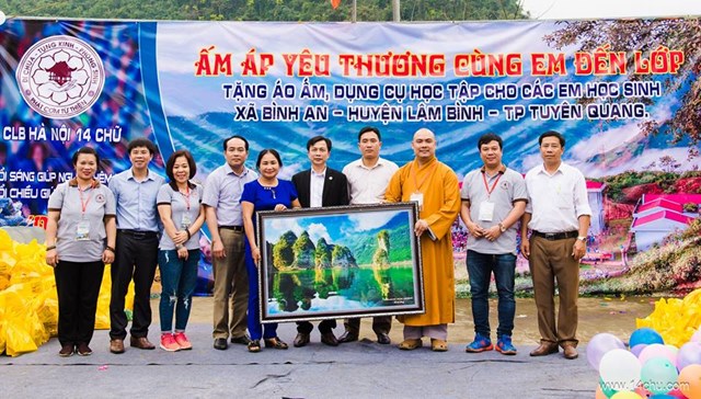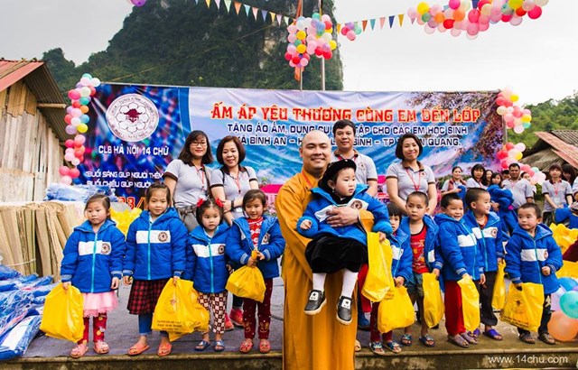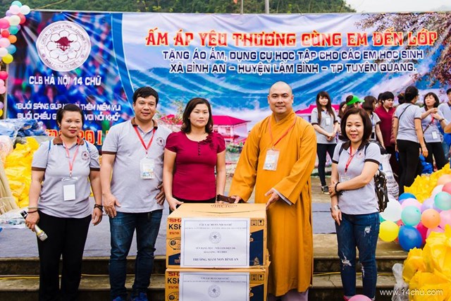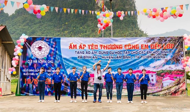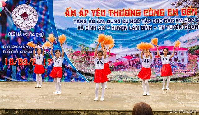 Gần 60 thành viên của CLB Hà Nội 14 Chữ mang màu xanh “Ấm Áp Yêu Thương” của 760 chiếc áo ấm trao tặng cho 760 cháu học sinh vùng cao của tỉnh Tuyên Quang cùng với rất nhiều các tặng phẩm khác như:
