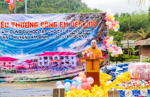 + Đồ dùng học tập, vở, bút, truyện tranh, đồ dùng cá nhân : bàn chải, khăn mặt, xà phòng, dép nhựa, phần bánh kẹo sữa cho các em học sinh.