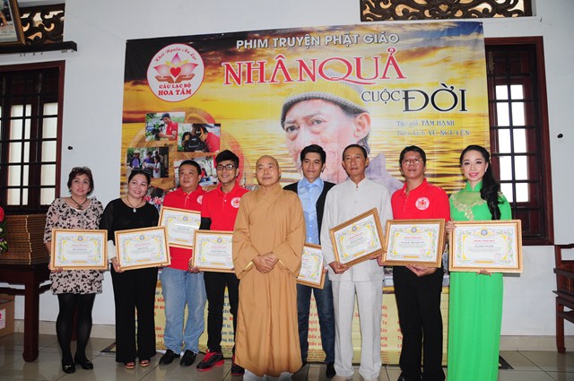 Tham dự buổi họp báo ra mắt bộ phim “ Nhân Quả Cuộc Đời” có TT. Thích Viên Giác – Phó ban văn hóa GHPGVN Thành phố Hồ Chí Minh, các cơ quan thông tấn báo chí, đài truyền hình AVG cùng tập thể diễn viên, toàn bộ ekip thực hiện phim và đông đảo các thành viên của CLB Hoa Tâm.