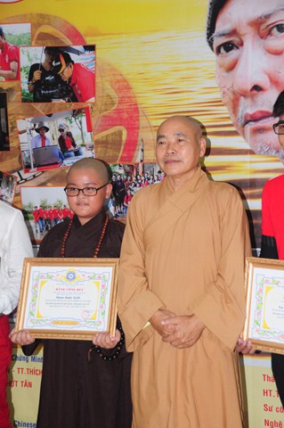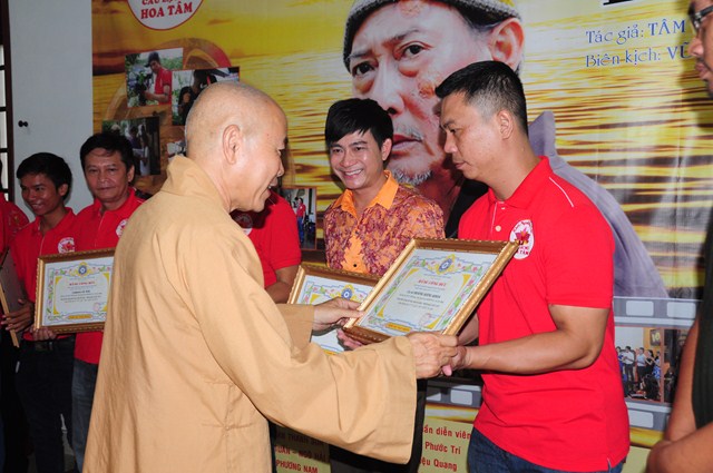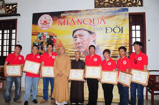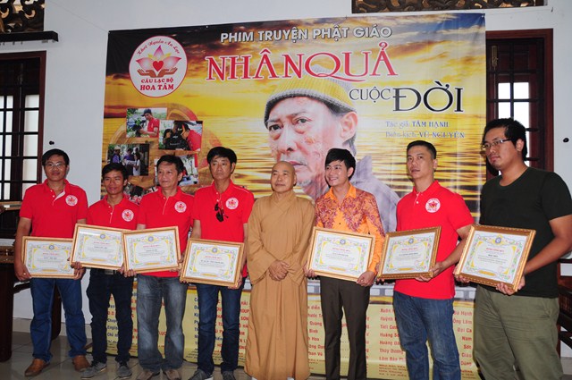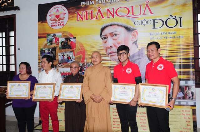 Cuối buổi họp báo, thay mặt cho BTS GHPGVN thành phố Hồ Chí Minh, TT.Thích Viên Giác, Phó ban Văn hóa GHPGVN TP.HCM đã trao bằng tuyên dương công đức cho 64 tập thể và cá nhân đã đóng góp công đức thực hiện bộ phim “ Nhân Quả Cuộc Đời” cúng dường Đại lễ Vu lan – Báo Hiếu PL. 2559 – DL. 2015.