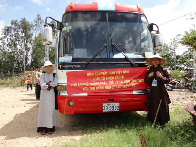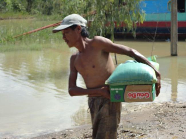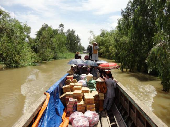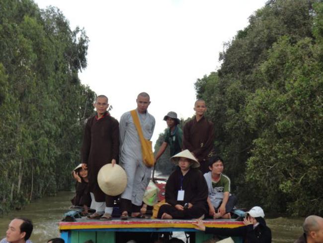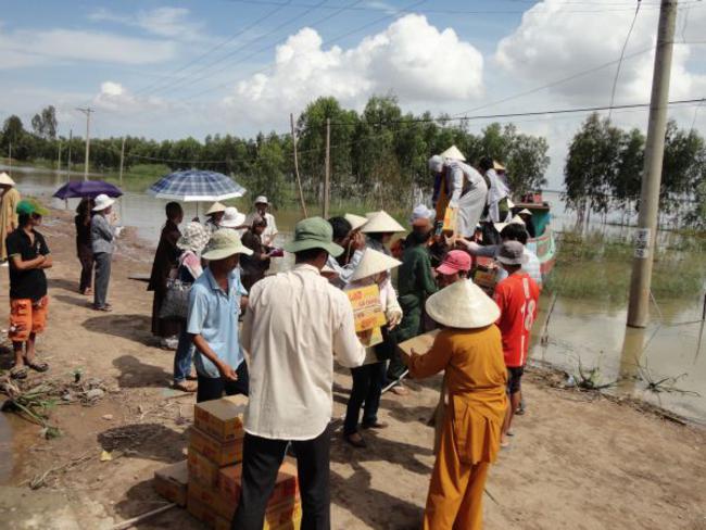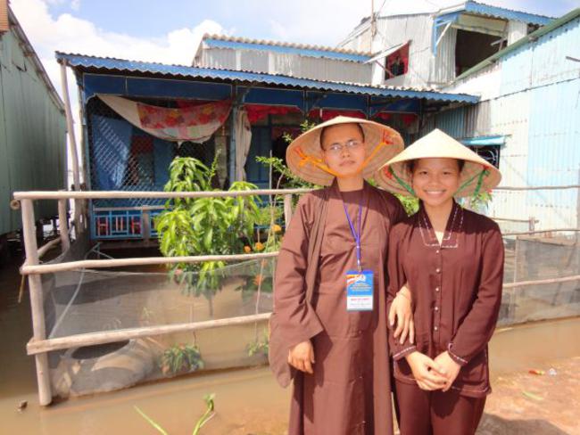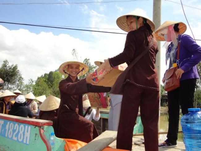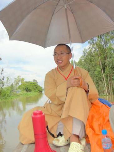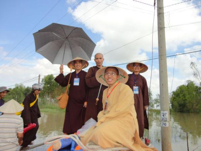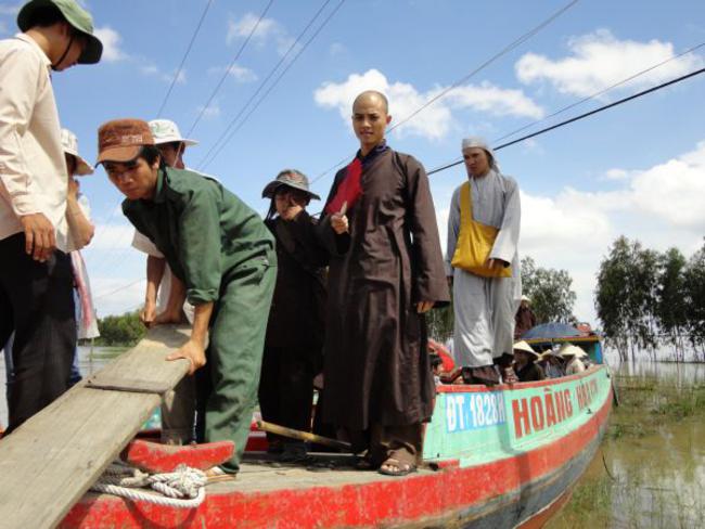 Địa bàn cuối thuộc Ấp Phú Xuân, xã Phú Đức, huyện Tam Nông, tỉnh Đồng Tháp đo ĐĐ. Thích Phước Huệ hướng dẫn. Đây là một trong những khu vực bị ngập nặng nhất, nằm sâu nhất. Bà con tại nơi này bị cô lập đã gần hai tháng qua. Do vậy, chúng tôi phải đi đò gần nữa giờ đồng hồ mới đến nơi. Dường như cuộc sống trong những ngày này họ chỉ nhờ vào tầm lòng hảo tâm từ các mạnh thường quân giúp đỡ.