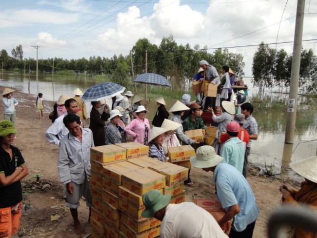 Chúng tôi đã đến đó và trao từng phần quà cho họ, trực tiếp chia sẻ, động viên, khích lệ tinh thần vượt khó, và tâm lòng kiên cường chống lũ bảo vệ quê hương.