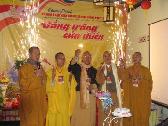 Mở đầu chương trình là lời phát biểu khai mạc của ĐĐ. Thích Quảng Tiến. Phần thắp nến mừng Kỷ niệm 5 năm thành lập CLB Hoằng Pháp Trẻ, cắt bánh sinh nhật, đốt pháo hoa và ca khúc “ Hoằng Pháp Trẻ Dấn Thân Vì Chúng Sanh” được vang lên trong tiếng vỗ tay và niềm hân hoan cùng tất cả mọi người. Bên cạnh đó là tiết mục biểu diễn võ thuật (múa kiếm, múa đao) của các em Gia đình Phật tử chùa Giác Hải.