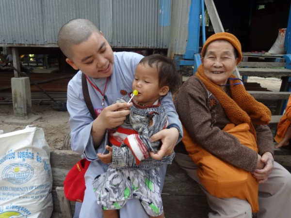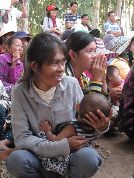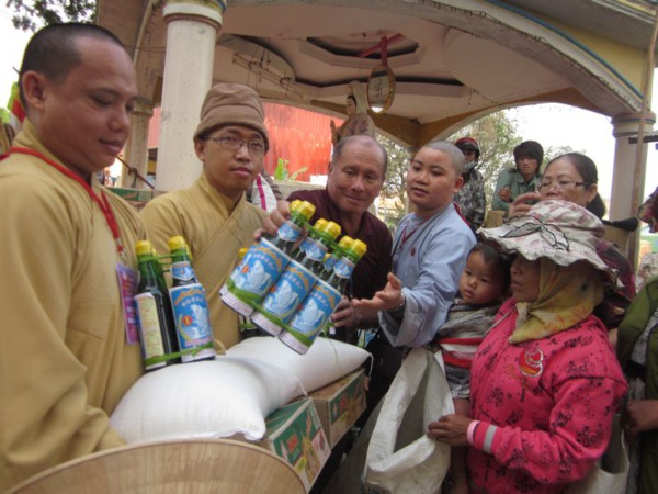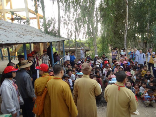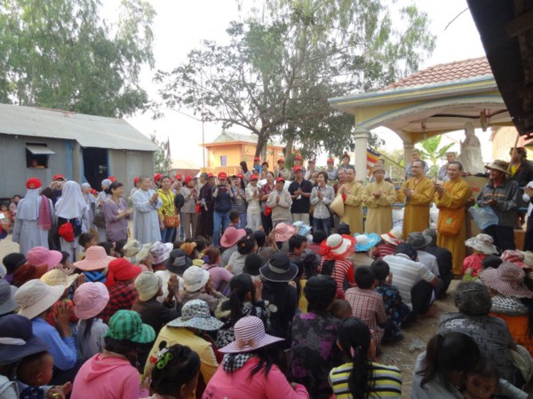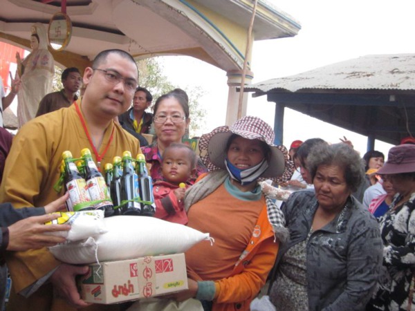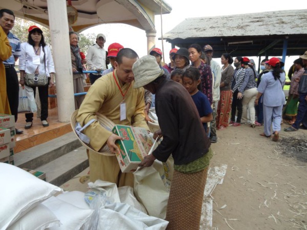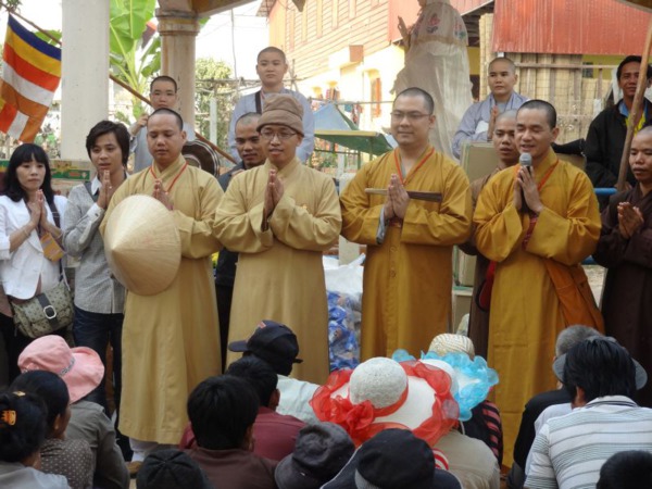 Những người dân Việt và cả Campuchia đến từ rất sớm, trong đó nhiều người nghe và hiểu được tiếng Việt. Đại diện CLB Hoằng Pháp Trẻ, Đại đức Chủ nhiệm Thích Phước Huệ thăm hỏi bà con và bày tỏ sự quan tâm, chia sẻ với những người đồng hương xa xứ. Đại đức Phó đoàn Thích Thiện Xuân thay mặt chư tôn đức và Phật tử trao tặng món quà quý nhất là Phật pháp đến với mọi người, thầy còn hướng dẫn đại chúng niệm Phật.