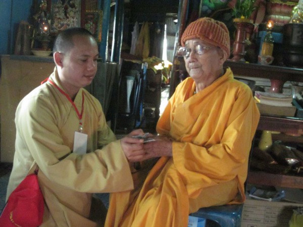 Danh hiệu đức Từ phụ bằng tiếng Việt và Pali ban đầu cất lên một cách dè dặt, sau đó thì rõ ràng hơn. Nụ cười an lạc bắt đầu nở trên khuôn mặt khắc khổ vì những lo toan của cuộc sống. Có những người từ ngày xa xứ chưa một lần được về thăm quê, hỏi tại sao, các cô trả lời bằng một câu hỏi buồn: “tiền đâu mà về hả cô?”