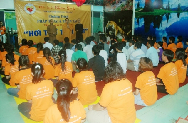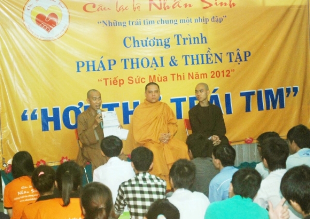 Mở đầu chương trình ĐĐ. Thích Giác Huyền đã chia sẻ, hướng dẫn phương pháp thiền tập, quán niệm hơi thở… nhằm mục đích giúp cho các bạn trẻ có dịp trở về sống với những phút giây tỉnh lặng, thực tập an lạc trong đời sống thường nhật, hướng đến cuộc sống an lạc, thánh thiện. Tiếp đến, ĐĐ. Thích Pháp Như chia sẻ kinh nghiệm thực hành Phật pháp, làm thế nào để nhớ bài vở và kỹ năng làm bài điểm cao. Song song đó, thầy cũng dành nhiều lời động viên tinh thần, chia sẻ thất bại từ chính bản thân mình để các bạn không còn áp lực, gánh nặng bài vở.