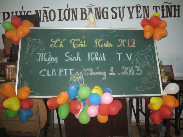 Ngày 20/01/13 (09.12 AL) CLB Phật tử trẻ Chùa Hải Quang đã tổ chức Lễ tất niên năm Nhâm Thìn cũng như mừng Sinh nhật cho các bạn thành viên CLB có ngày sinh trong tháng 1.