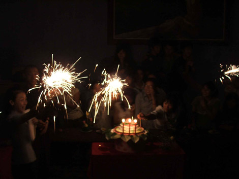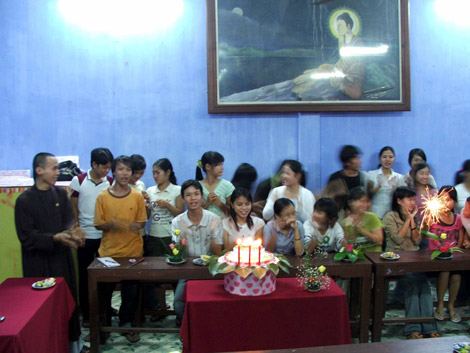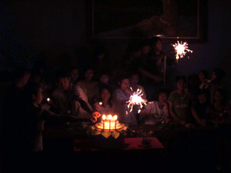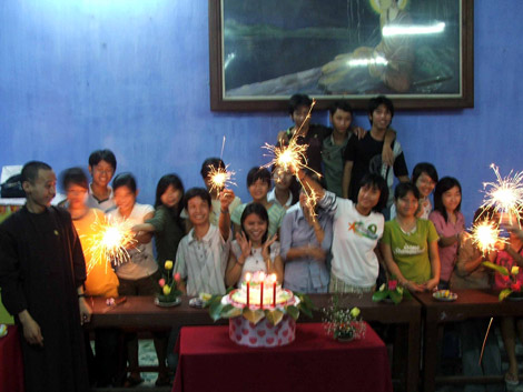 Sau khi diễn văn kỷ niệm vừa dứt, đèn nến sáng lung linh được Thầy chủ nhiệm thắp lên trên chiếc bánh làm ấm áp trong lòng mọi thành viên. Những cánh hoa tươi thắm cùng tiếng hát cười rộn rã xua tan cái mưa lạnh của miền Trung.