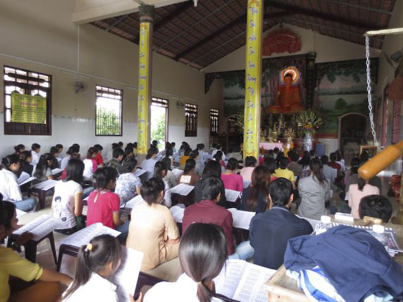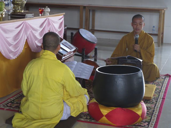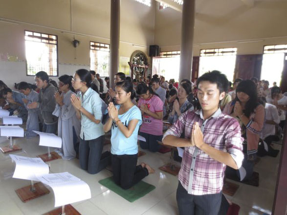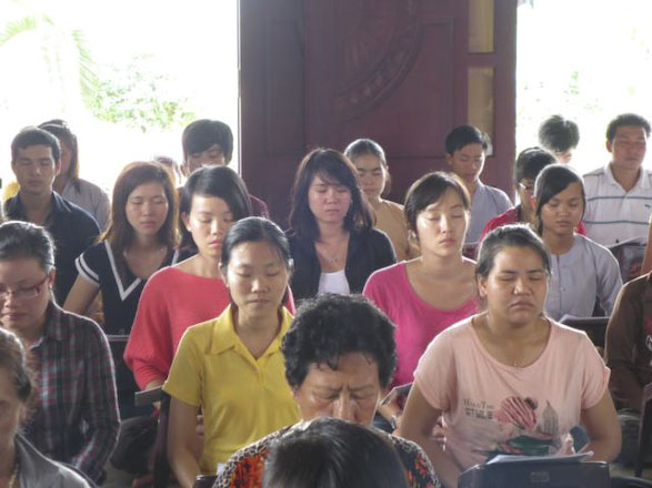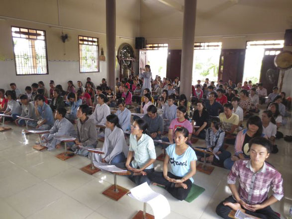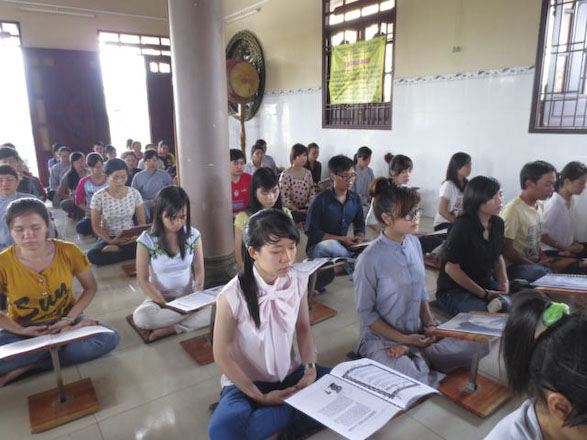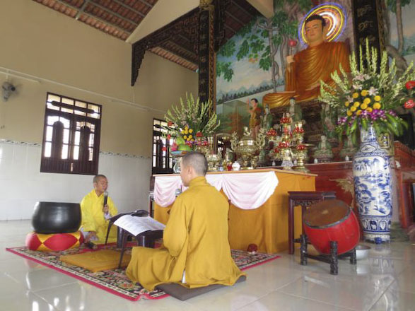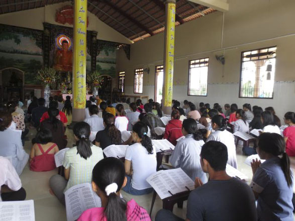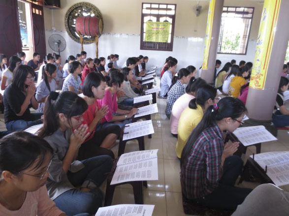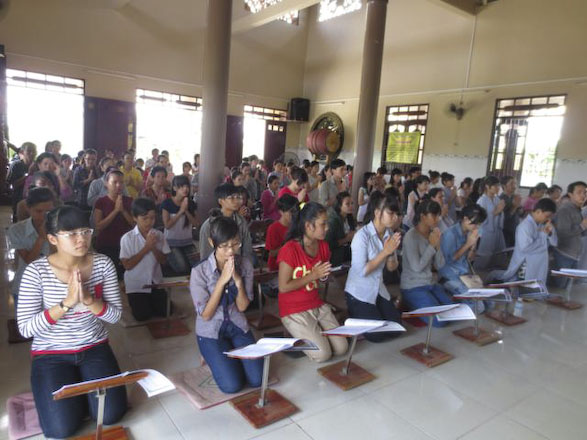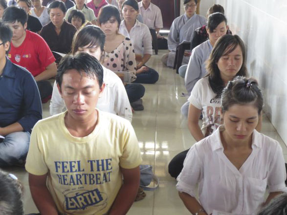 Buổi lễ phóng sanh hoàn mãn, đoàn về Chùa Khánh Ninh để dùng cơm trưa và tại đây các bạn có dip nhìn lại mình trong thời kinh thương yêu và chia sẻ sự sống, tiếp nối thời kinh là buổi thiền tập với sự hướng dẫn của Đại Đức Thích Thiện Tịnh, cuối cùng các bạn trẻ được Đại Đức Thích Minh Thạnh chia sẻ về ý nghĩa của ngày lễ phóng sanh này.