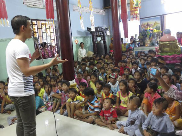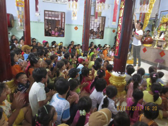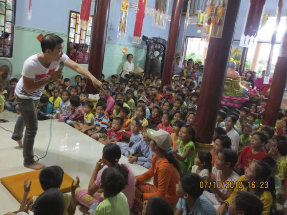 Tiếp nối cuộc hành trình, đoàn lại tiếp tục khởi về Chùa Giác Thiện, ấp Tân Hoà, Xã Tân Tập, Huyện Cần Giuộc, Tỉnh Long An, tuy không xa thành phố Hồ Chí Minh, nhưng đây là một xã nghèo, đời sống người dân còn khó khăn, vất vả. Các bạn trẻ đến đây để chia sẻ một phần khó khăn của mình đến các em nhỏ nghèo khó. Phần quà tuy không là bao nhưng chất cả bao tình của câu lạc bộ sống để cho đi, nhầm thực tập theo lời Phật dạy, sống đâu chỉ có riêng mình.