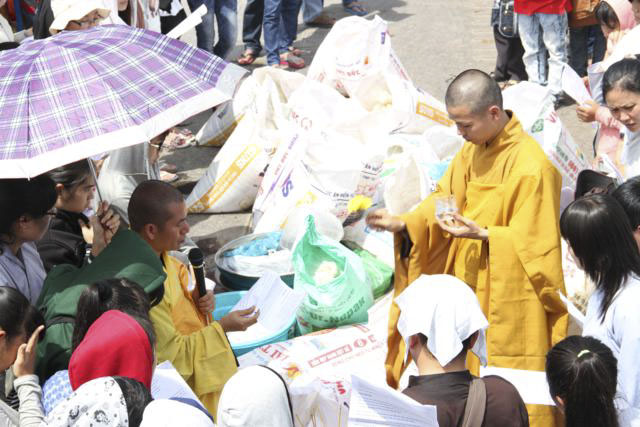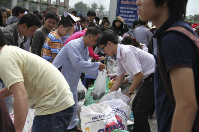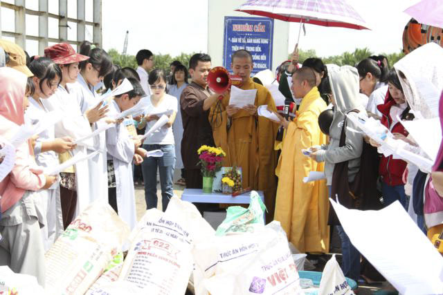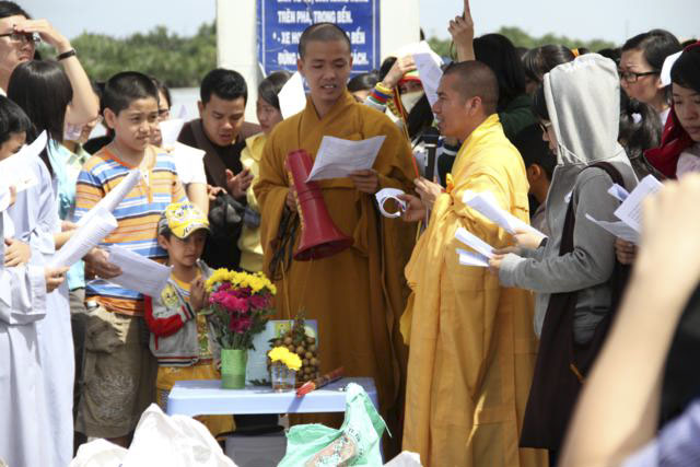 Khởi hành vào lúc 6 giờ 30 sáng ngày 7 tháng 10 năm 2012 tại Chùa Phụng Sơn, các bạn trẻ đến huyện Cần Giuộc để thực tập san sẻ yêu thương đến mọi loài chúng sanh, mỗi người đã nhín một phần ăn của mình đóng góp và mua những loài thuỷ sản, đi vào chợ, vựa cá để cứu chuộc những sinh linh nhỏ bé, buổi lễ phóng sanh được thực hiện tại trên sông Cần Giuộc, Tỉnh Long An trong không gian yên tỉnh và trang nghiêm, danh hiệu Bồ Tát Quan Thế Âm vang lên trầm hùng và thánh thoát. Các loài thuỷ sản được trả tự do về thế giới của riêng mình trong tình yêu thương của các bạn trẻ nhầm gieo hạt giống lành.