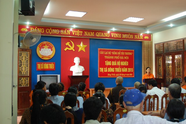 Ngày 30/9/2015, Đoàn từ thiện đã có mặt tại tỉnh Quảng Ninh, nơi mà đã bị thiệt hại trong trận mưa lũ, sạt lở đất xảy ra vào cuối tháng 7 dương lịch vừa qua. Điểm đầu tiên mà đoàn ghé thăm và tặng quà là thị xã Đông Triều, tỉnh Quảng Ninh. Tại đây, đoàn đã được lãnh đạo UB MTTQVN thị xã Đông Triều, tỉnh Quảng Ninh đón tiếp. Đoàn đã gặp gỡ, giao lưu và trao quà cho 216 hộ gia gia đình có hoàn cảnh khó khăn cùng với 120 người khiếm thị với tổng số gạo là: 6,7 tấn và 216 thùng mì .