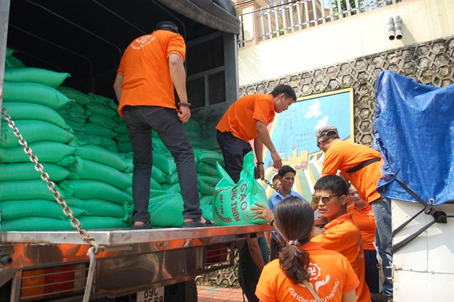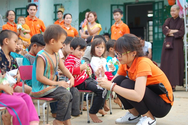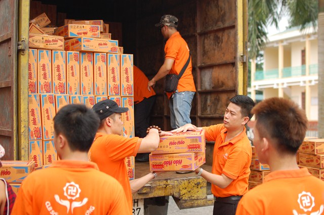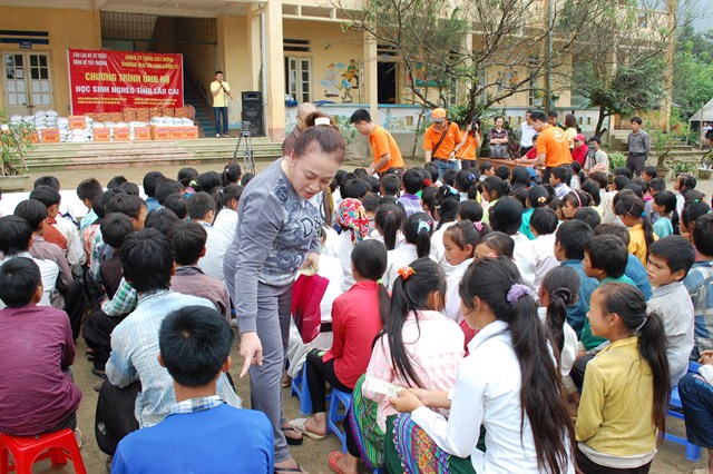 Tiếp đó, đoàn đã tới phường Mạo Khê, thị xã Đông Triều, tỉnh Quảng Ninh để giao lưu, chia sẻ với trẻ em mồi côi, tàn tật, đồng thời tặng quà 120 phần quà cho các em, mỗi phần quà bao gồm 20kg gạo và 1 thùng mì tôm.