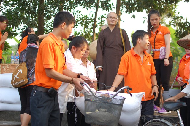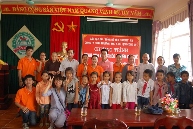 Tham gia cùng đoàn, ngoài các thành viên của CLB từ thiện “ Sống để yêu thương”, đại diện nhà hảo tâm của Công ty TNHH XD& TM – DL Công Lý, tỉnh Bạc Liêu còn có chư tôn đức Tăng Ni một số tỉnh thành phía Nam, các bạn tình nguyện viên của thủ đô Hà Nội và một số Phật tử cùng các mạnh thường quân.