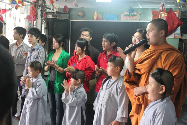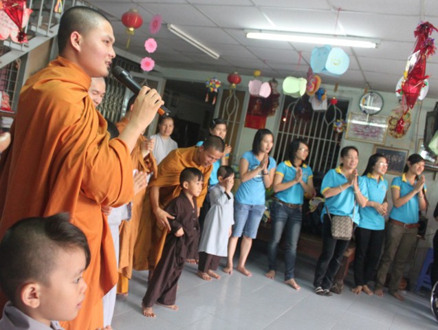 Thượng tọa chia sẻ: “Đã vì những mảnh đời bất hạnh trong cuộc sống, mà các bạn trẻ được sự hướng dẫn của chư Tăng thực hiện được những chương trình từ thiện hết sức có ý nghĩa, mang tính nhân đạo như thế này, để cùng nhau giúp đỡ các em có được chiếc bánh, lồng đèn và nhất là tình thương của các bạn đã dành cho các em nhân ngày tết trung thu, thay mặt trường Long Hoa tôi xin tán thán và tri ân”.