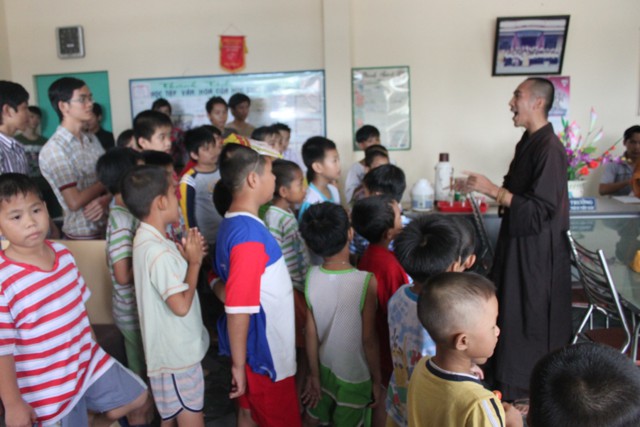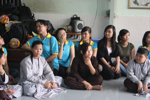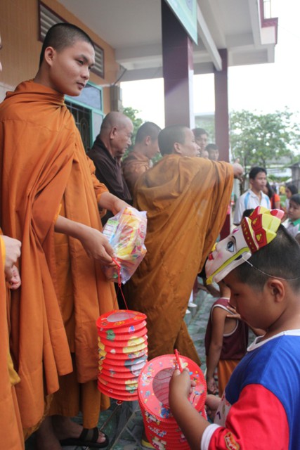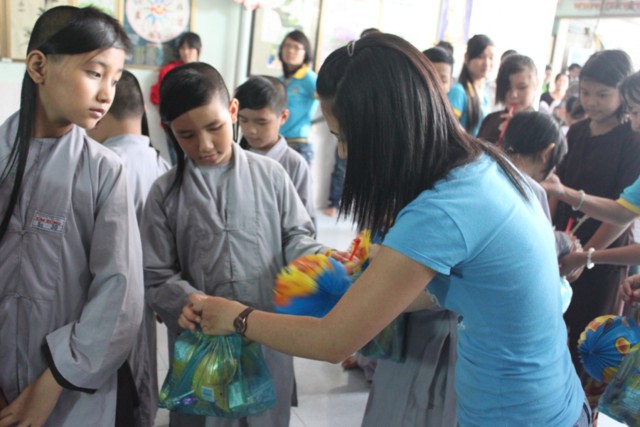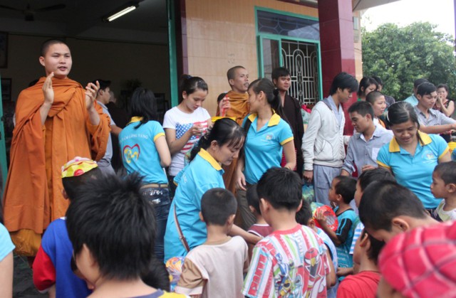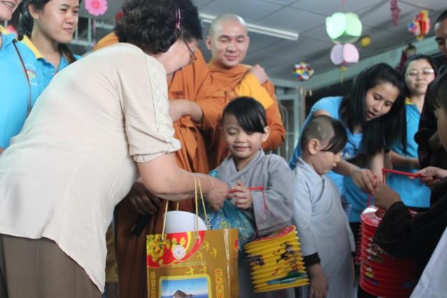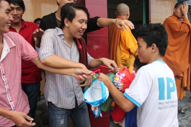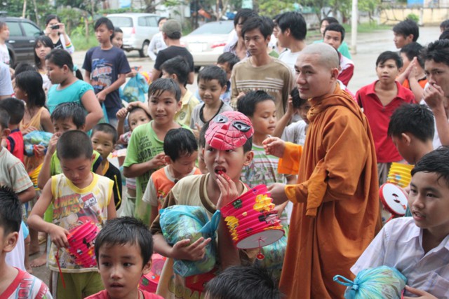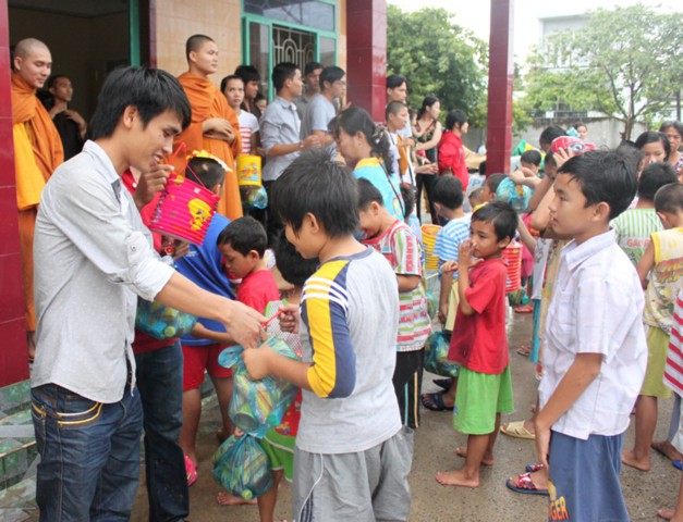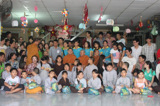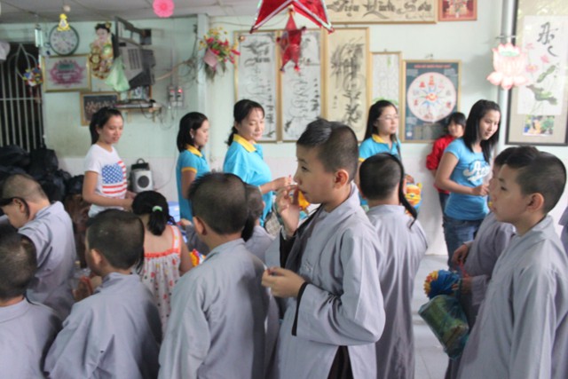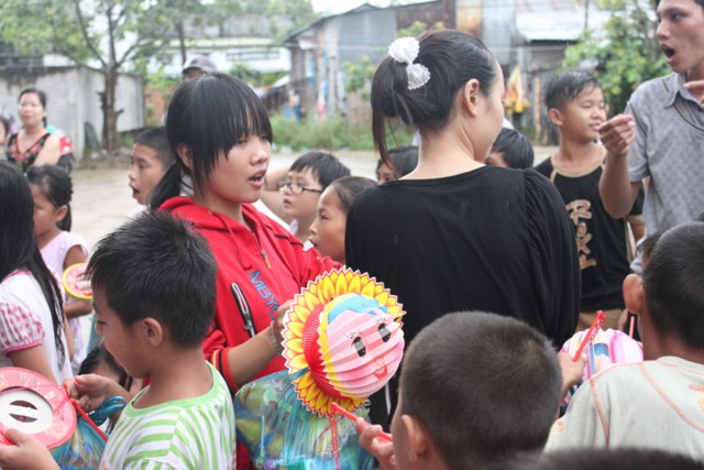 Đến nơi, chư Tăng và thành viên ai cũng ướt đẫm cả người. Giữa cái lạnh, cái mệt của tuyến đường xa, nhưng mọi người ai cũng cảm thấy hạnh phúc và vui tươi, vì đã làm được một điều thật sự ý nghĩa trong mùa trung thu, đó là được tận tay mình trao cho các em mồ côi có hoàn cảnh khó khăn trong cuộc sống được đón nhận những phần quà, chiếc lồng đèn trong ngày tết của các em.