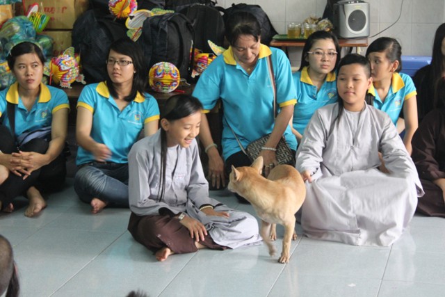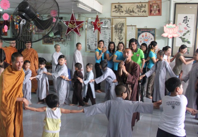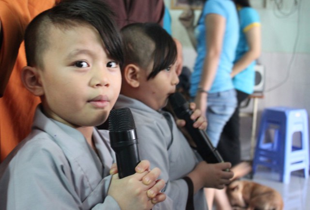 Khi bước đến Tịnh thất Linh Sơn điều mà làm cho toàn thể thành viên bất ngờ là các em chạy đến ôm chầm lấy và trao cho các thành viên những nụ hôn bé bỏng, thay cho lời chào đón nồng nhiệt của mình.