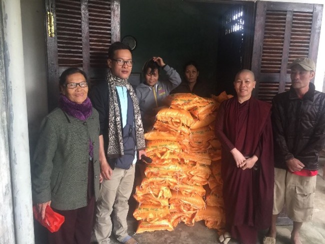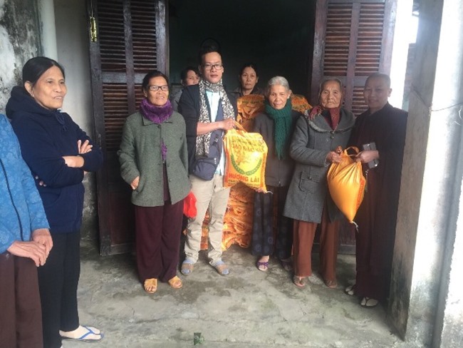 Ngày 3/02/2018 đến phát tại Thôn An Chuẩn, Xã Đức Lợi, Huyện Mộ Đức, Quảng Ngãi gồm 217 phần quà. Được biết đây là một xã nằm sát vùng biển Đức Lợi trong nhiều năm qua chịu nhiều thiên tai, lũ lụt từ năm 2009, sạt lở đất khiến 150 gia đình mất hết nhà cửa tất cả phải nhờ vào viện trợ của chính phủ, có những gia đình neo đơn người già mất hết con cái qua những chuyến đi biển đầy sóng gió. Bà Trần thị Phụ (phật tử lão thành) đã chia sẻ , Bà không quản ngại những ngày lạnh giá giáp tết liên lạc giúp CLB Thiện nguyện Sala đem những phần quà đến tận tay những gia đình nghèo và còn cho biết có những người già neo đơn không đi được bà đã mang quà đến tận nơi. Thật xúc động và ấm áp tình người trong lúc xuân về. Bà con vô cùng hoan hỷ và gửi lời chân thành cám ơn đến Tu nữ Bi Nguyện – chủ nhiệm CLB và các nhà hảo tâm.