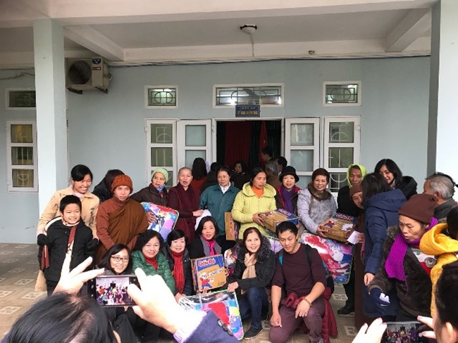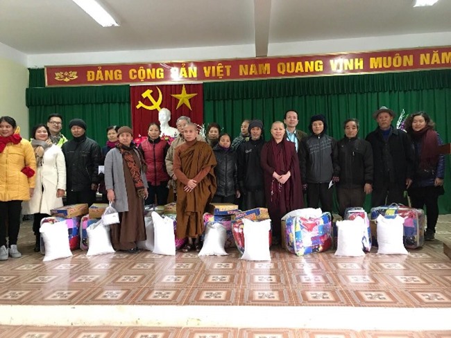 Sáng 31/01/2018 Đoàn ra Hà Nội cùng Sư Pháp Minh đến phát quà cho đồng bào nghèo dân tộc Mường ở Đội 5, Thôn Phú Yên, Xã Yên Bài. Huyện Ba Vì – Hà Nội và đã phát 200 phần quà tại Hội Trường của UBND Xã. Dưới cái rét đậm năm nay khoảng 8o . Đoàn đem quà đầy ắp hương vị Tết đến đồng bào miền núi dưới sự chứng kiến của Chính quyền địa phương, bà con rất hoan hỷ khi nhận những món quà ấm áp nghĩa tình. Đại diện chính quyền phát biểu cảm tạ Đoàn sau khi Sư Pháp Minh cho biết lý do của chuyến từ thiện là từ nhân duyên Sư hành đạo tại miền Bắc trong thời gian qua, thấy cảnh đồng bào nghèo, nên đề xuất nhờ BQL Dự Án Sala Garden- Đồng Nai & Resort Oceanami- Vũng Tàu ủng hộ thông qua tu nữ Bi Nguyện.