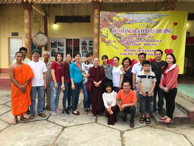 2.Về chương trình phát quà Tết Xuân Mậu Tuất (2018) CLB Sala được sự quan tâm ủng hộ của BQL Dự Án SALA GARDEN – Phước Long – Đồng Nai và Resort OCEANAMI – Long Hải – Barịa Vũng Tàu. Tập đoàn bước đầu đã tài trợ bằng hiện vật gồm 1000 phần quà cho gia đình dân nghèo vui Tết mỗi phần quà trị giá 350.000 đồng, Tháp tùng cùng BQL và nhân viên Dự Án Sala Garden- Đồng Nai và Resort Oceanami-Vũng Tàu là tu nữ Bi Nguyện (Chủ nhiệm CLB Sala), bà Lê Thị Toàn (Pd Nguyên Mỹ -Phó Chủ nhiệm CLB), anh Nguyễn Quốc Đảm (Pd Chánh Tín- kế toán CLB), em Lý Ngọc Bích (Pd SuKha Panna – thủ quỹ CLB), Minh Đức (Phó ban vận động) và một số thiện hữu. Thiện pháp này đã được thực hiện theo lịch sau : Đoàn được chia thành 2 đợt đã thực hiện phát quà đến đồng bào nghèo thông qua 5 chùa: