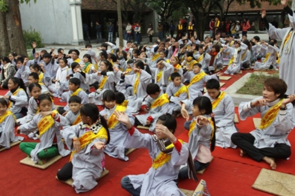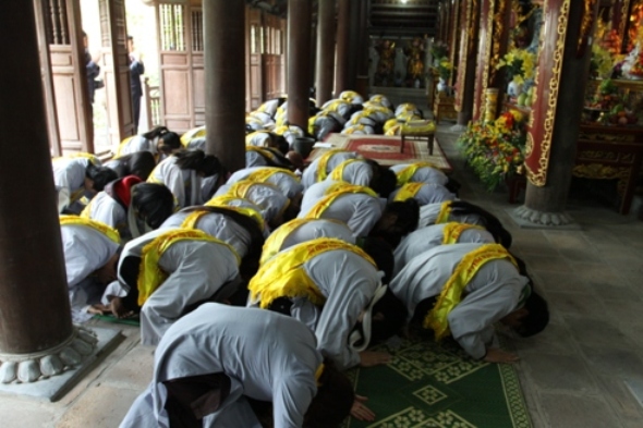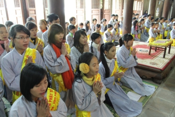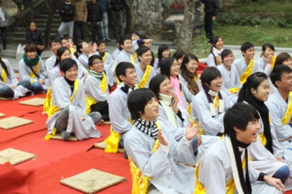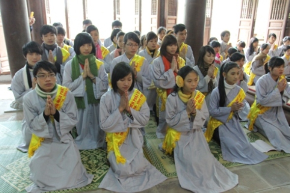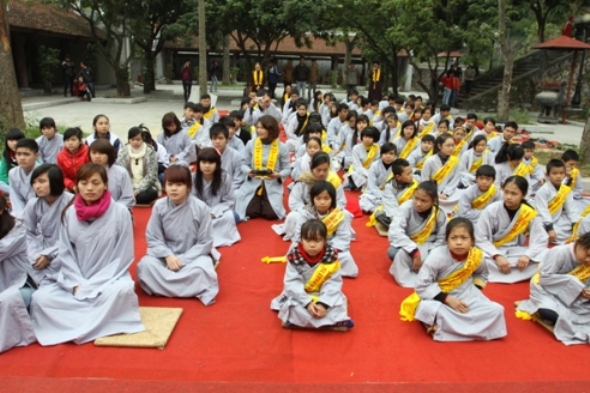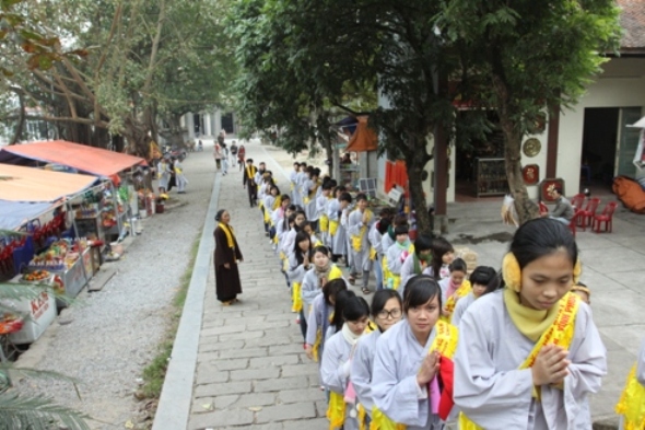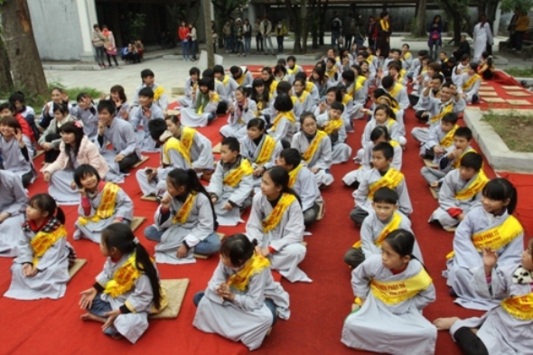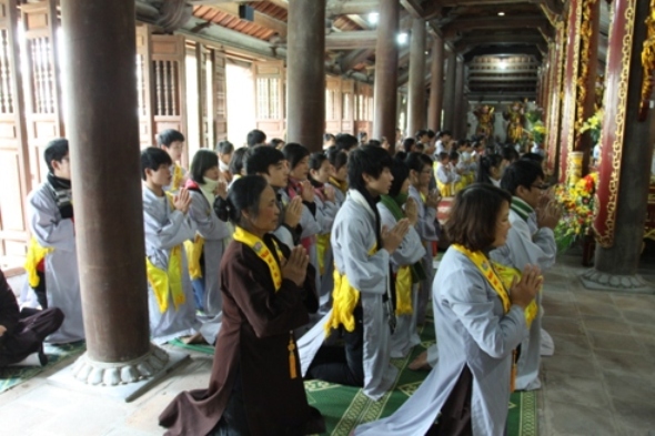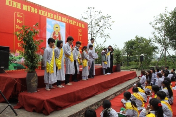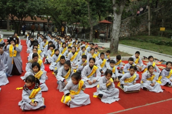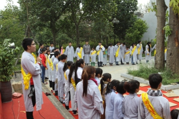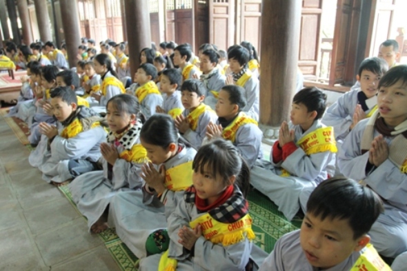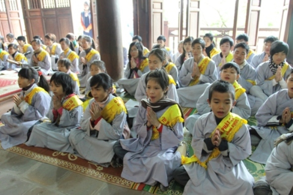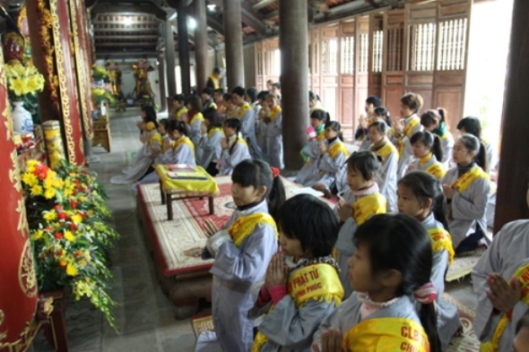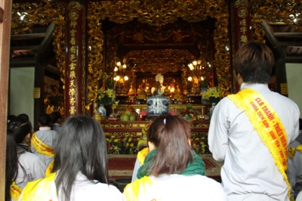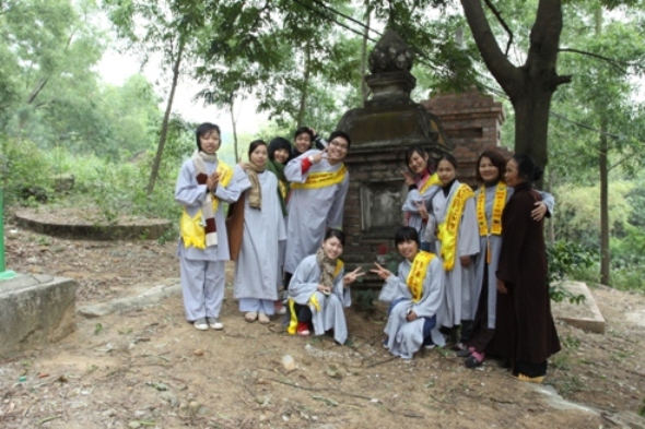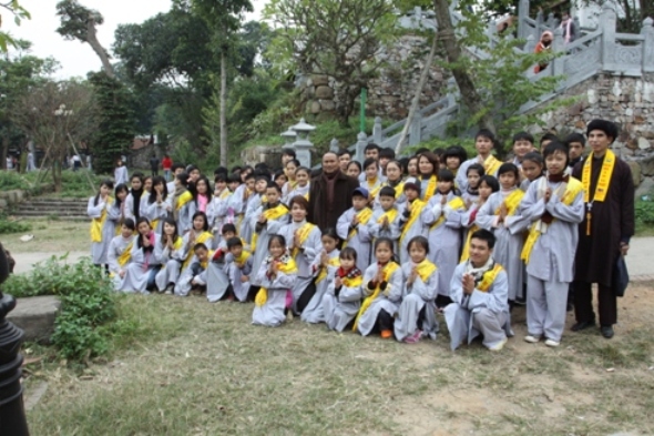 Tại đây các em đã vào chùa thắp hương lễ Phật, thăm quan pho tượng Phật được tạc bằng đá đã 1000 tuổi, được nghe Đại Đức Thích Giác Đạt giới thiệu về lịch sử khởi dựng Chùa cùng công lao tu hành cống hiến của Chư Tổ đối với Đạo pháp và Dân tộc.