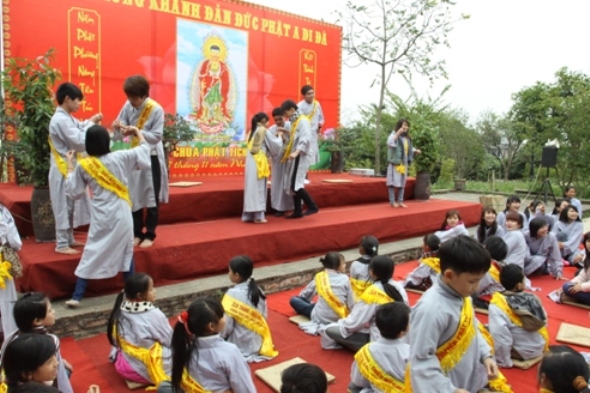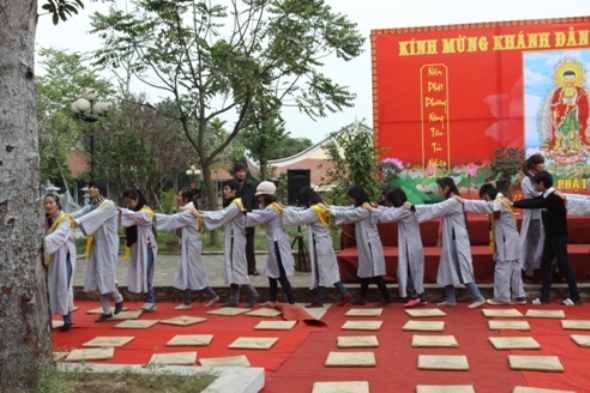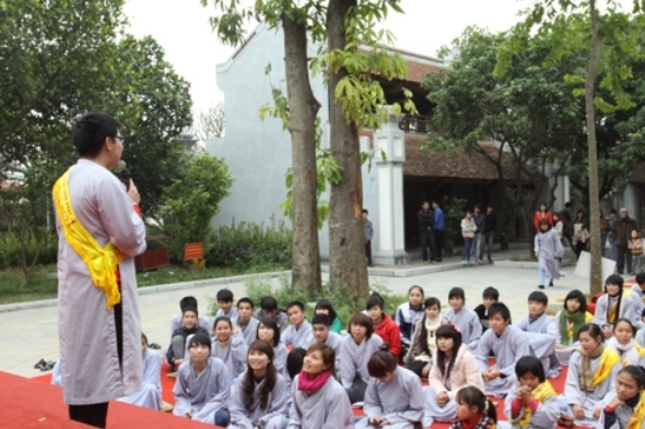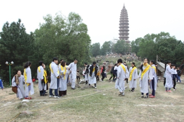 Sau đó các em được giao lưu học hỏi, chia sẻ kinh nghiệm trong nếp sinh hoạt với các bạn trong CLB Thanh Thiếu Niên Phật Tử Chùa Phật Tích, cùng vui chơi và giao lưu văn nghệ với các bạn, thăm Bảo Tháp, chiêm bái pho tượng Phật trên đỉnh núi Lạn Kha.