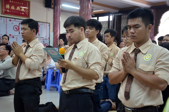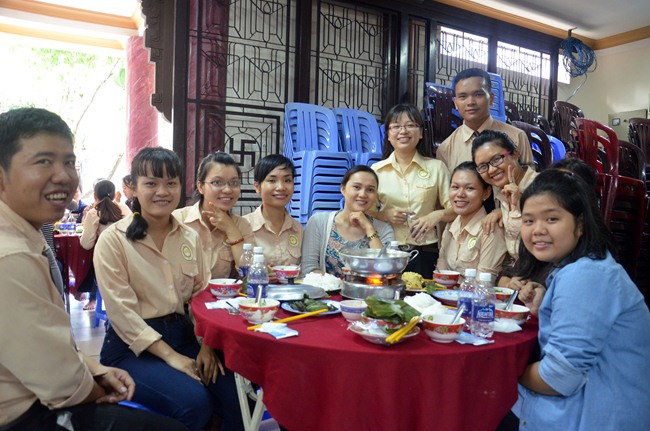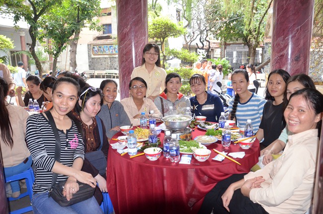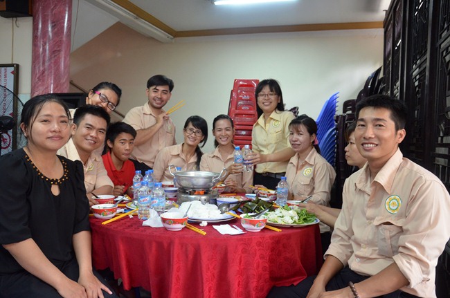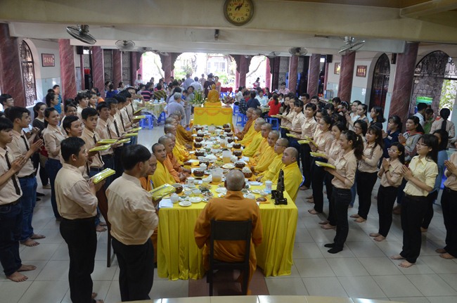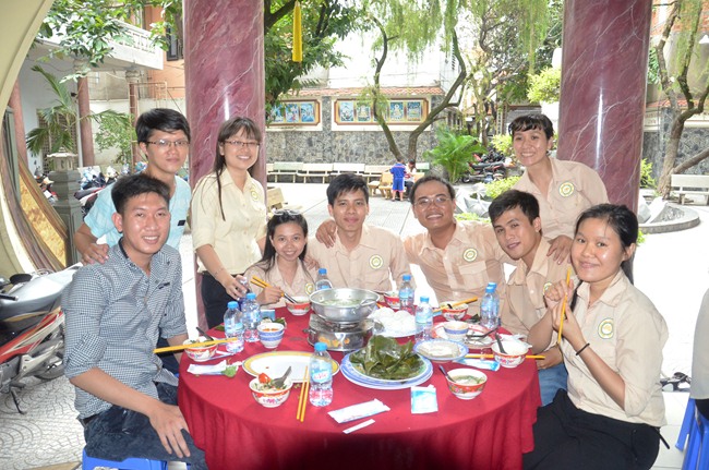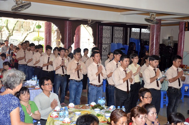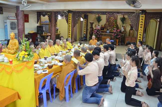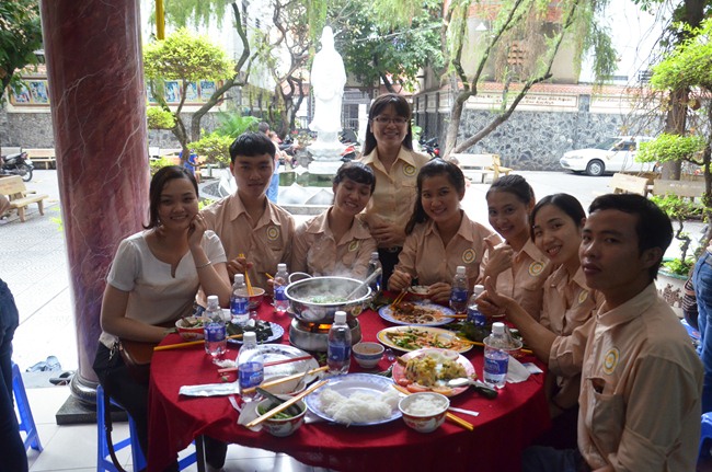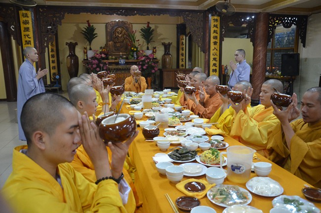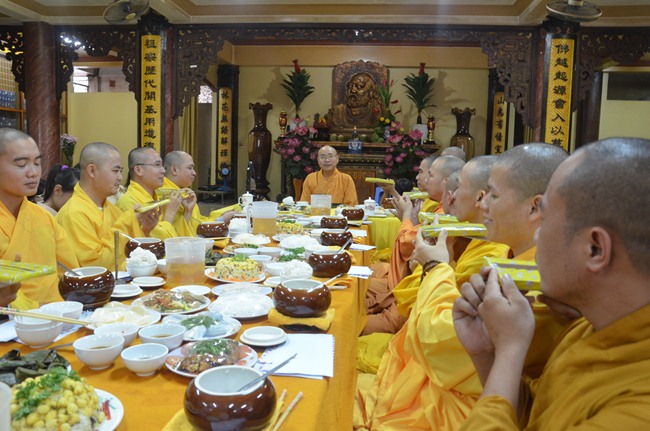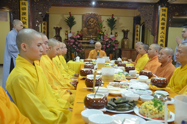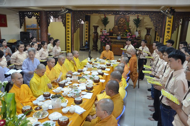 Khi buổi lễ kết thúc, tất cả thành viên quây quần bên nhau cùng chung nhau bữa cơm chay thanh đạm.