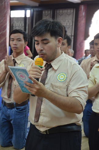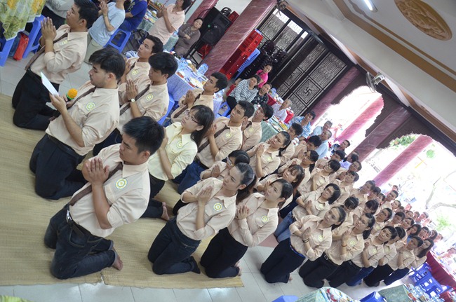 Chương trình bắt đầu như những buổi sinh hoạt hằng tuần khác. Các bạn thanh niên thực hành Thiền Hành và Sám hối dưới sự hướng dẫn của quý Thầy.