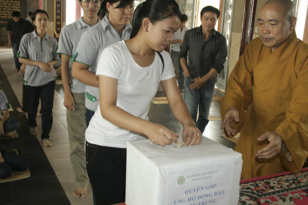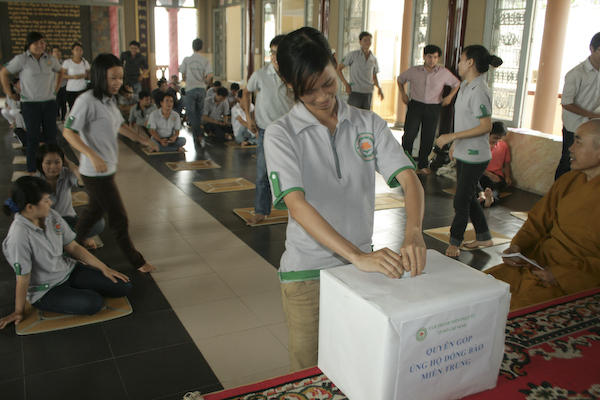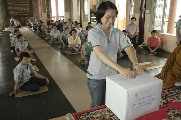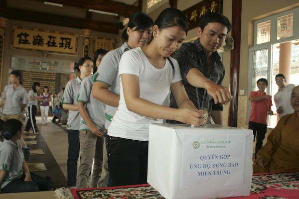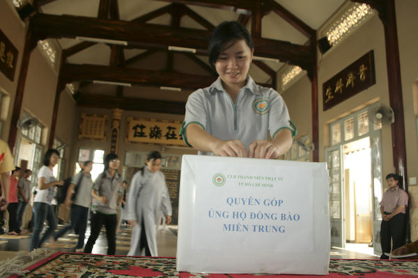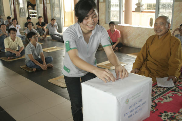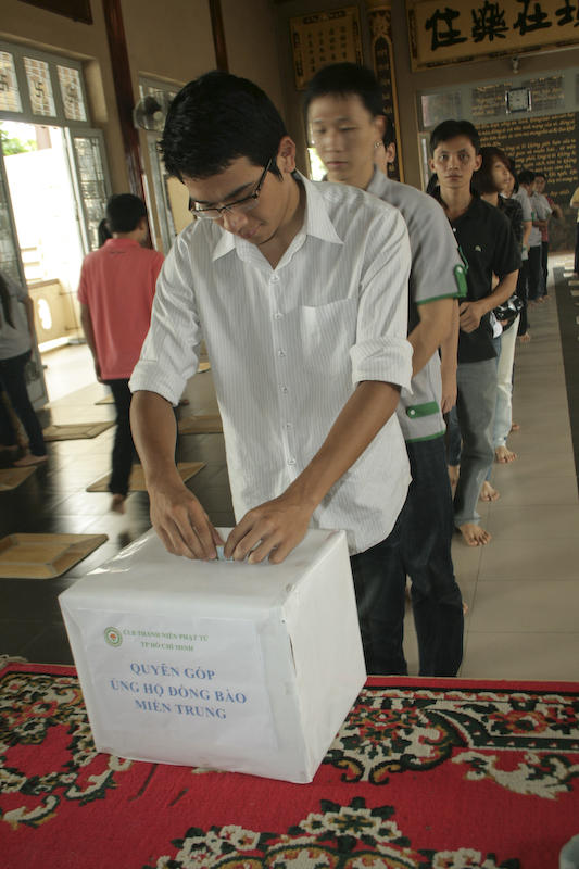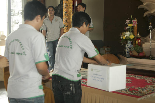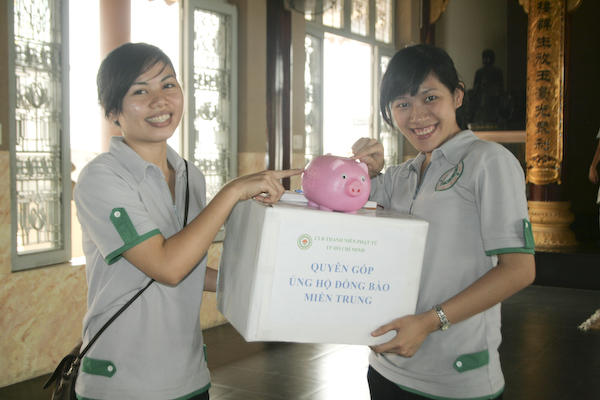 Ngày 24/10/2010, trong buổi sinh hoạt định kỳ vào sáng Chủ nhật hằng tuần, dưới lời kêu gọi tương thân, tương ái và thể hiện tình thương của người con Phật. TT. Thích Viên Giác – Trụ trì chùa Từ Tân, Cố vấn chứng minh CLB TNPT cùng tất cả thành viên CLB đã có buổi quyên góp ủng hộ đồng bào miền Trung ruột thịt. Ngoài ra TT. Viên Giác và Ban chủ nhiệm CLB còn lên kế hoạch kêu gọi sự trợ duyên của toàn thể ban ngành, đạo tràng sinh hoạt và tu học tại chùa.