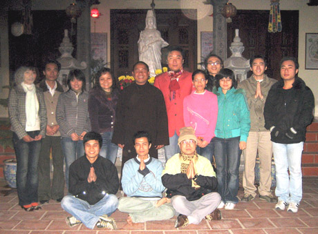 4. Hoàng Trung và Minh Hạnh hướng dẫn CLB ôn luyện một số bài ca Phật giáo. Thật xúc động khi những lời ca được cất lên từ những con tim đang thổn thức: