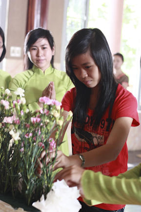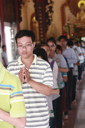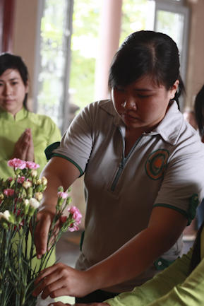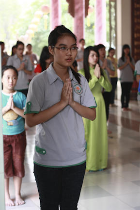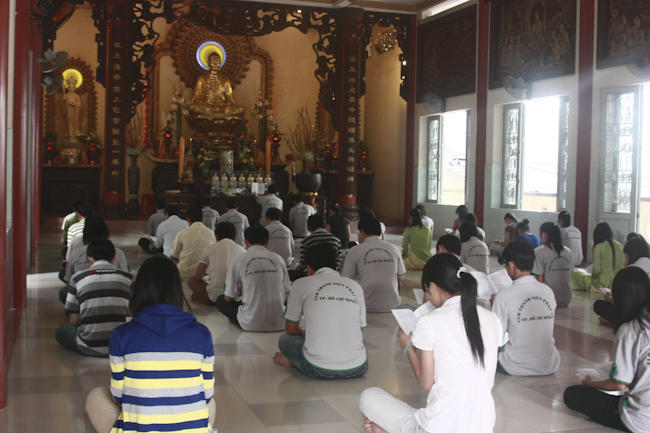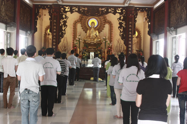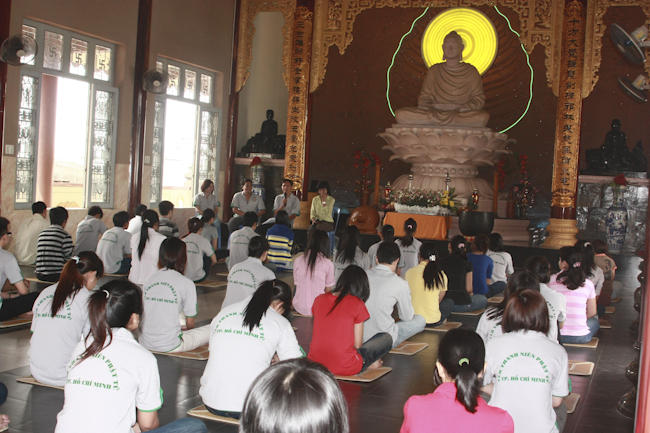 Chắc cũng do chia tay một thời gian dài lưu luyến tình thân và tình đạo nên buổi sinh hoạt đâu năm thành viên tham gia khá đông, trước giờ lễ Phật thì không như thường lệ vì các thành viên tâp trung rất sớm và đông, những tiếng chào mừng và thăm hỏi nhau giữa của BCN, thành viên nhộn nhịp cả sân chùa, làm cho không khí trở nên vô cùng ấm cúng.