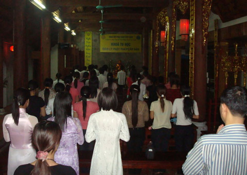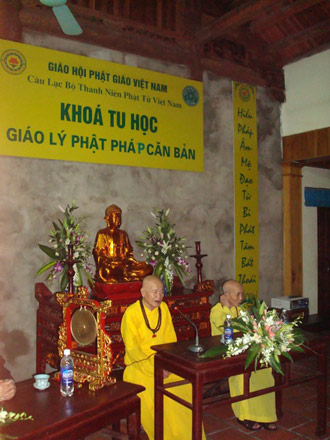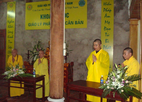 Sau đó đại đức giáo thụ giảng ý nghĩa của khóa học. Buổi lễ kết thúc hồi 21h trong tinh thần hoan hỷ của toàn thể thành viên CLB Thanh niên Phật tử Việt Nam thành phố Hà Nội.