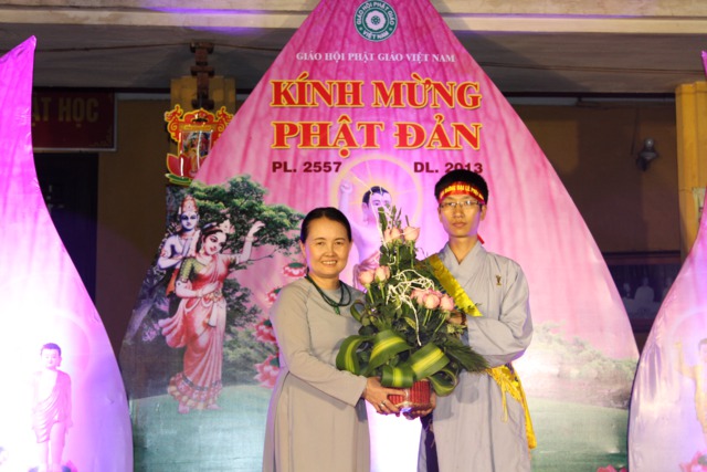 Nhân dịp này chư Tôn đức đã đón nhận những lẵng hoa tươi thắm do đại diện các CLB TTN Phật tử trong toàn Thành phố dâng tặng.