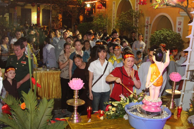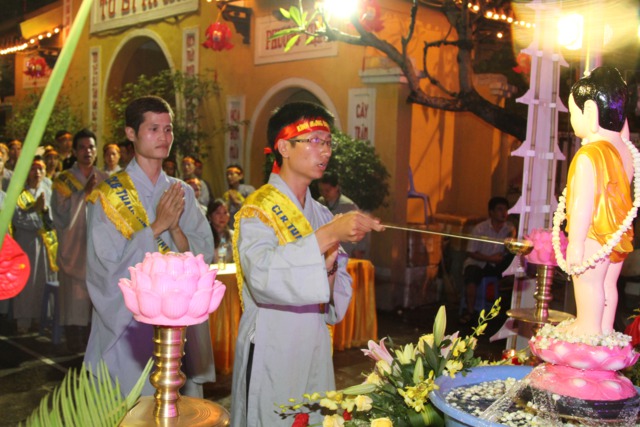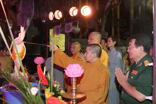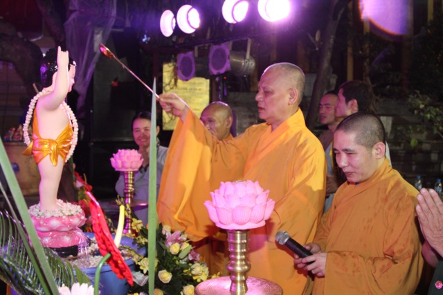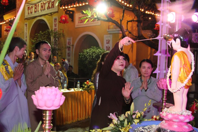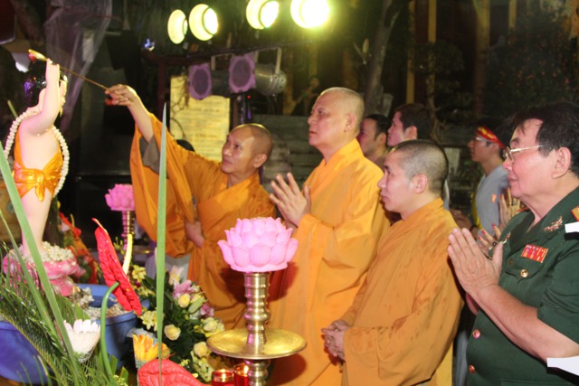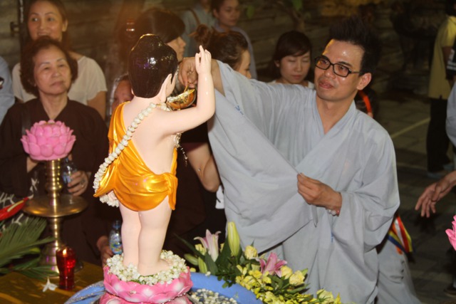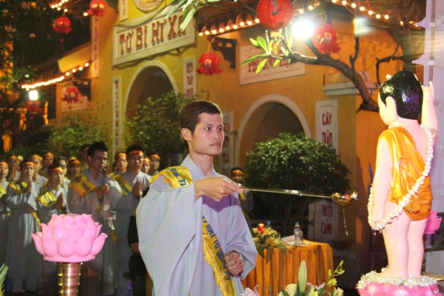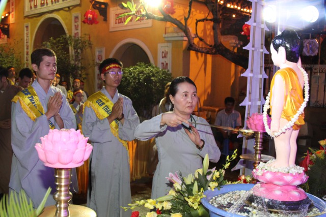 Chư Tôn đức và toàn thể đại chúng làm lễ Nghi thức niêm hương và lễ tắm Phật được trong không khí trang nghiêm và thành kính.