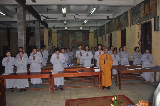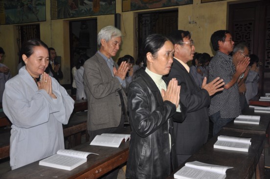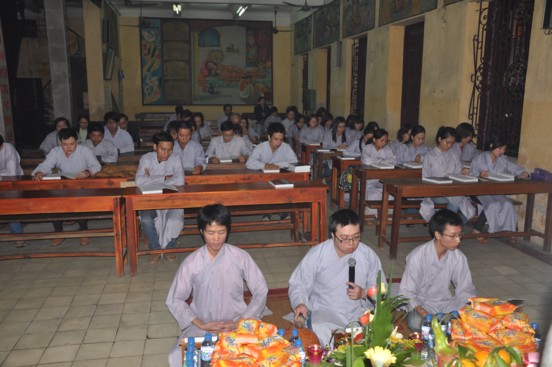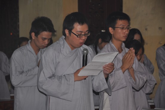 Trong không khí trang nghiêm thanh tịnh, CLB TTN Phật tử tụng kinh A Di Đà nguyện cầu Quốc thái dân an.
